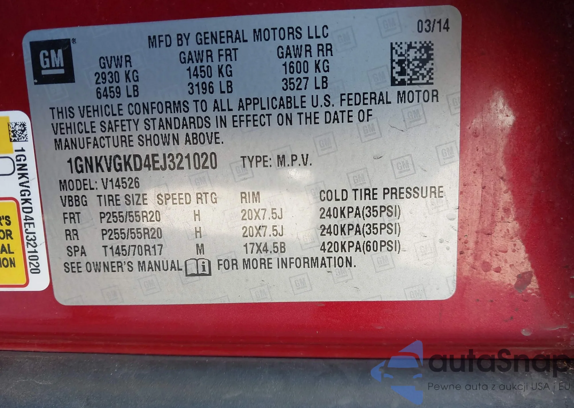 • VIN 1GNKVGKD4EJ321020