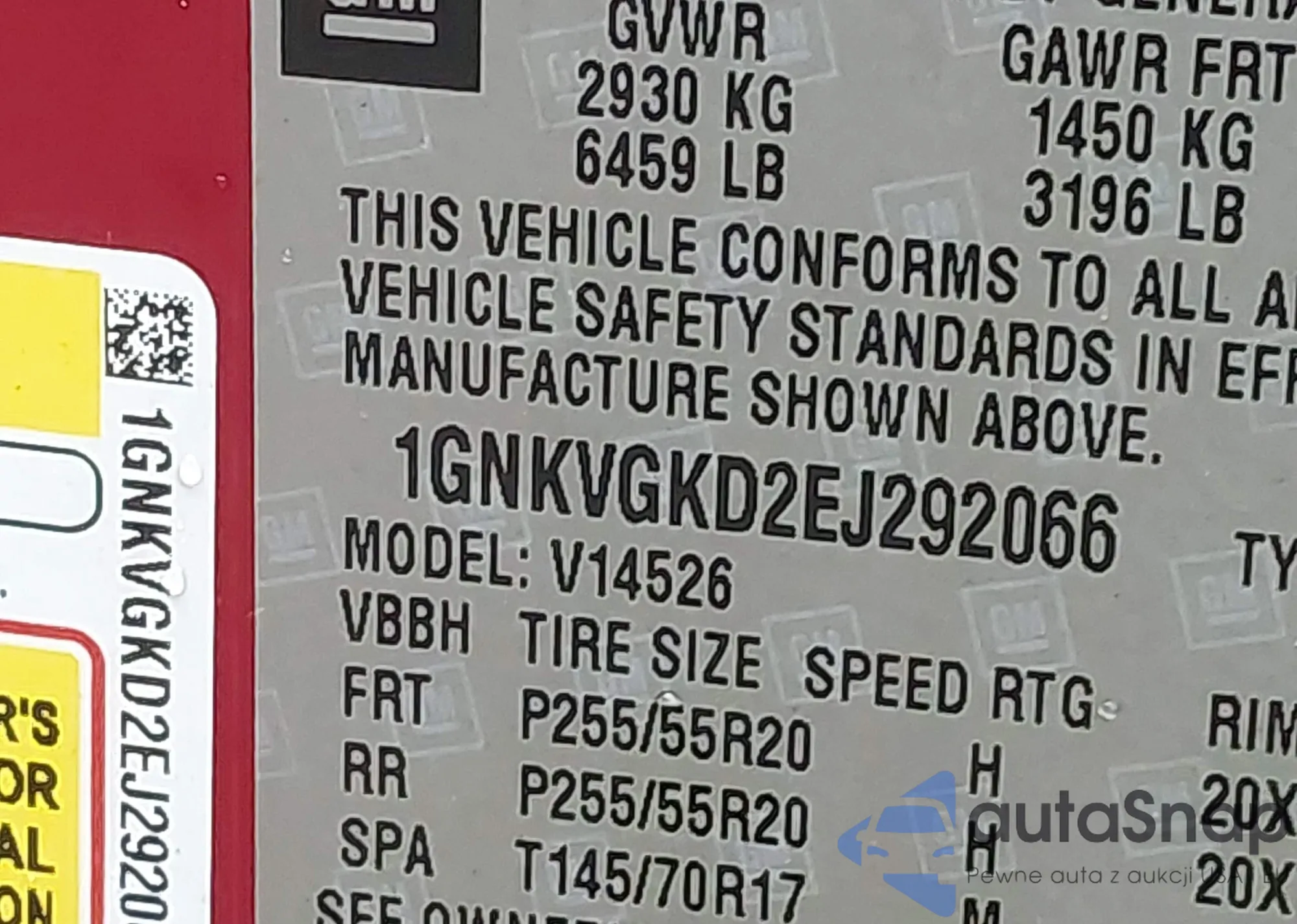 • VIN 1GNKVGKD2EJ292066