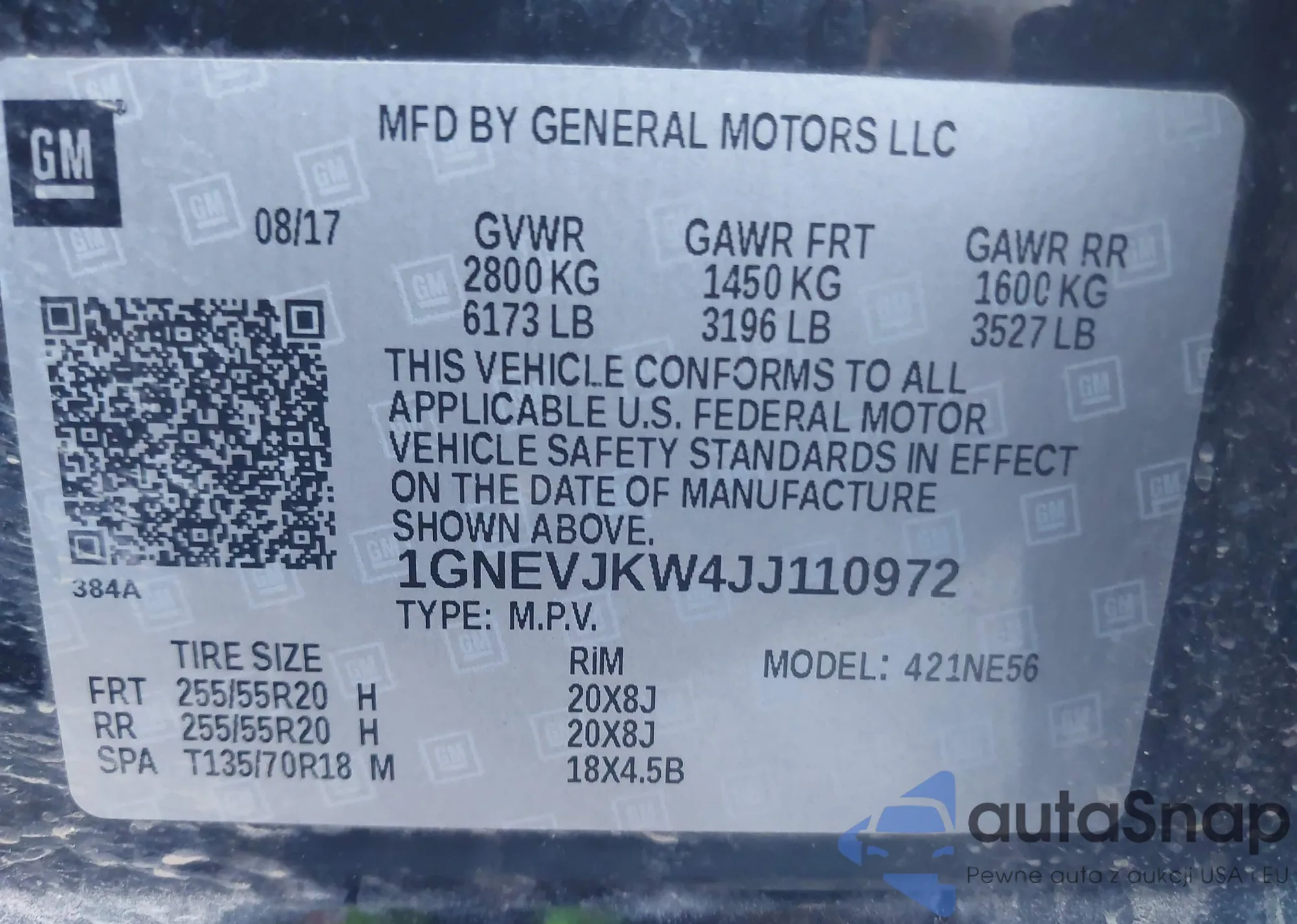 LOT: 65908055 VIN: 1GNEVLKW1JJ152558