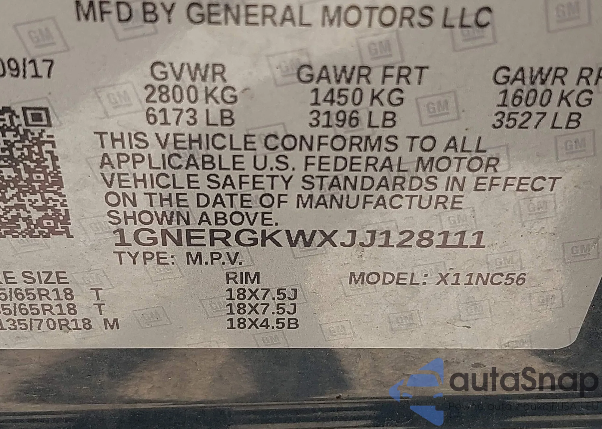 LOT: 42764233 VIN: 1GNERGKWXJJ128111