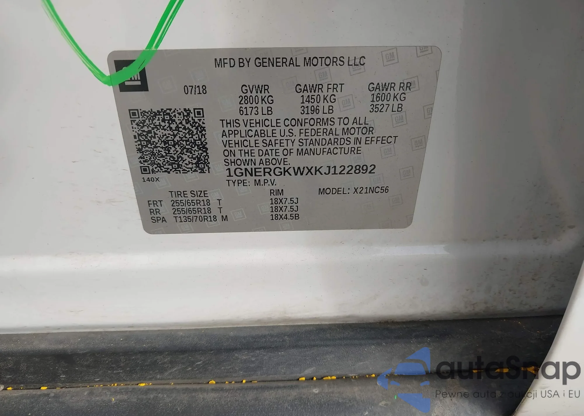 LOT: 43985987 VIN: 1GNERKKW6JJ245445