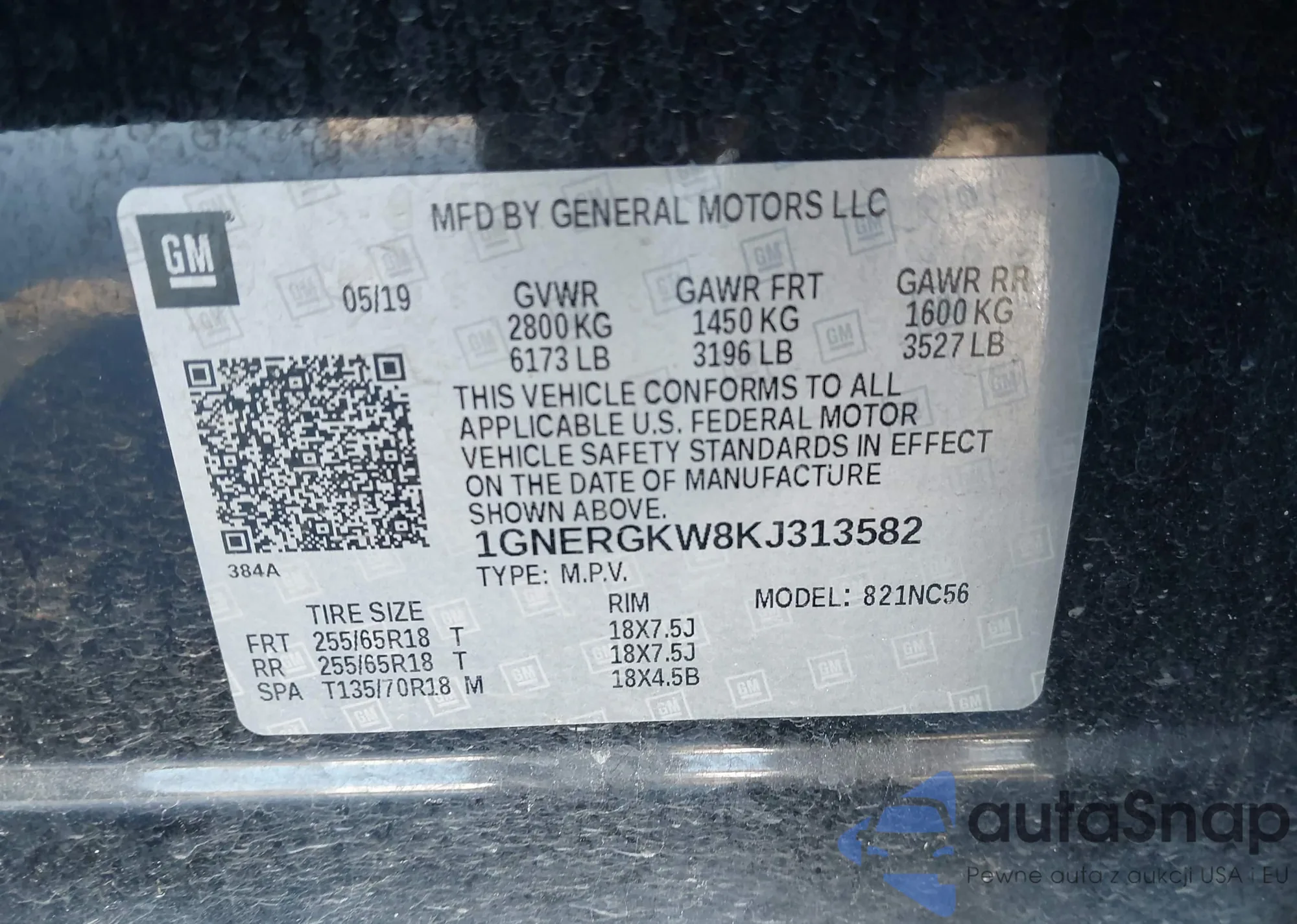 LOT: 44008459 VIN: 1GNERGKW8KJ313582