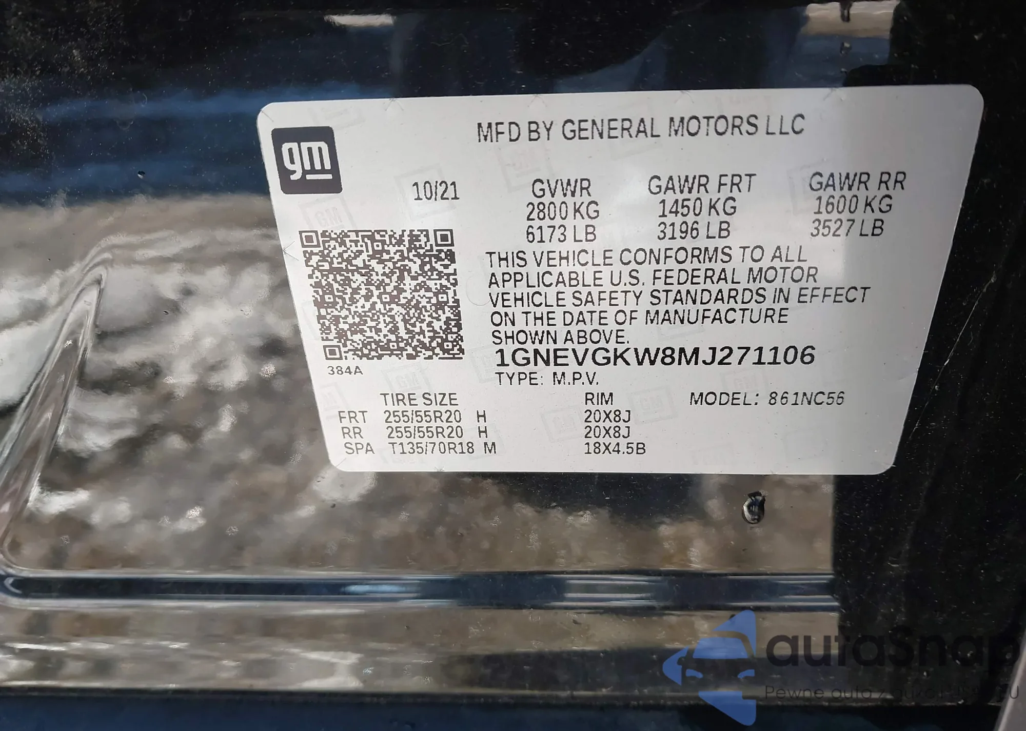 • VIN 1GNEVGKW8MJ271106