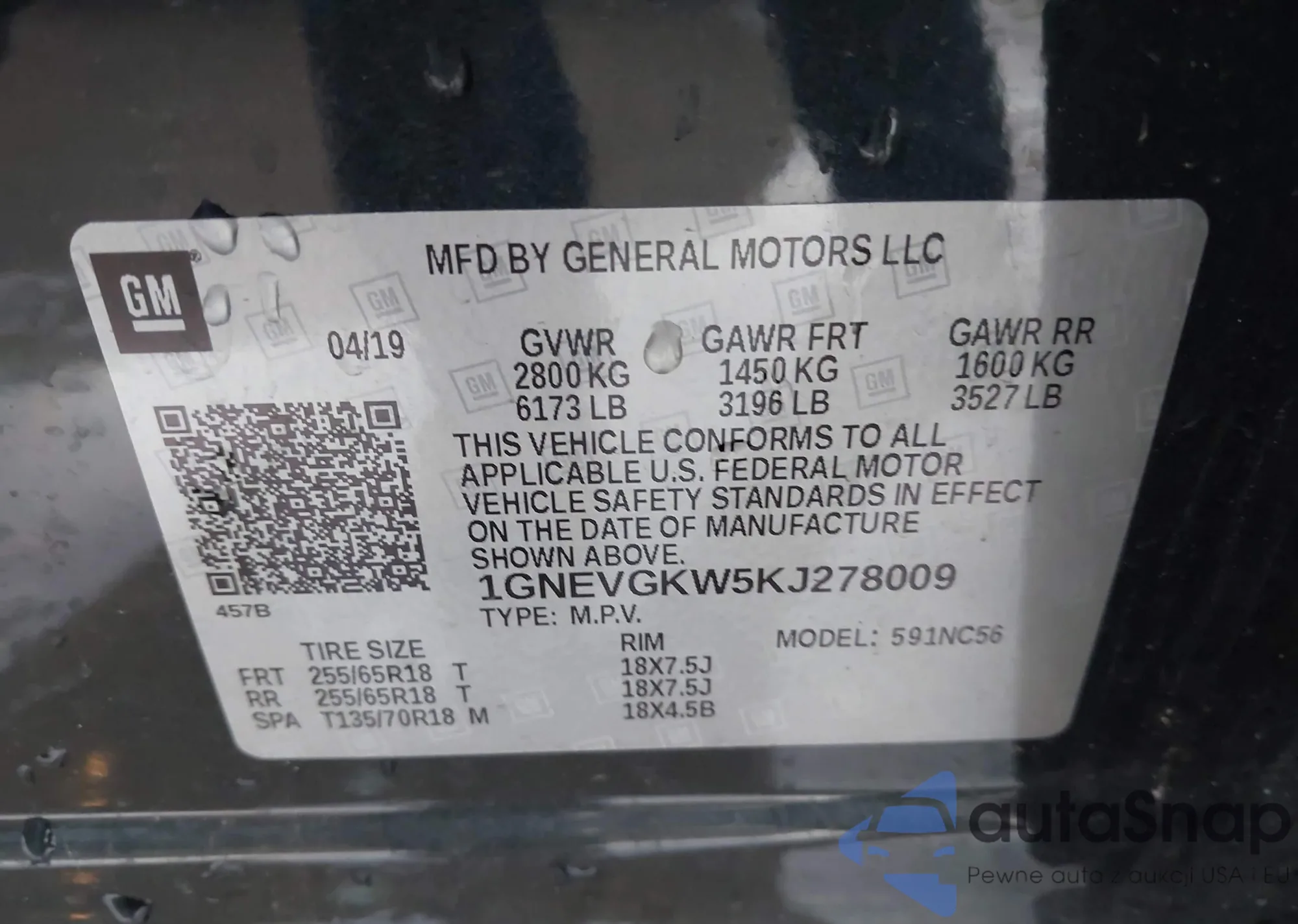 LOT: 44116658 VIN: 1GNEVGKW5KJ278009