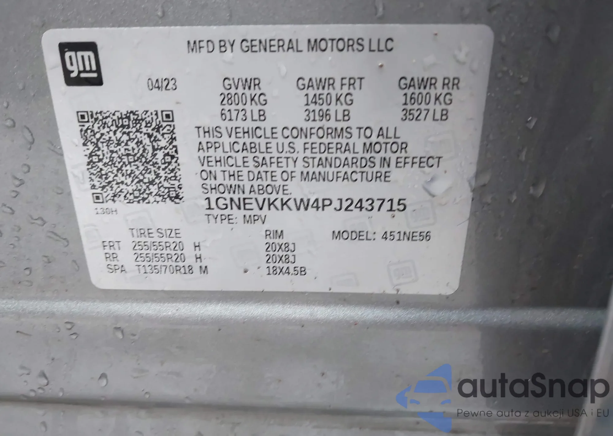 LOT: 44107345 VIN: 1GNEVKKW4PJ243715