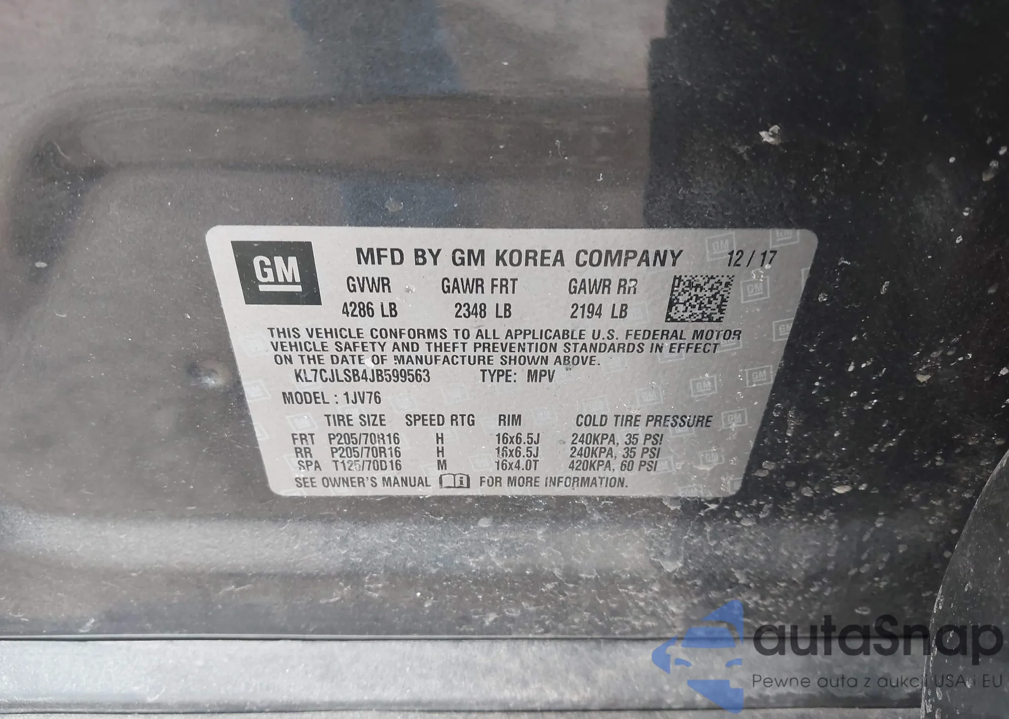 • VIN KL7CJLSB4JB567289