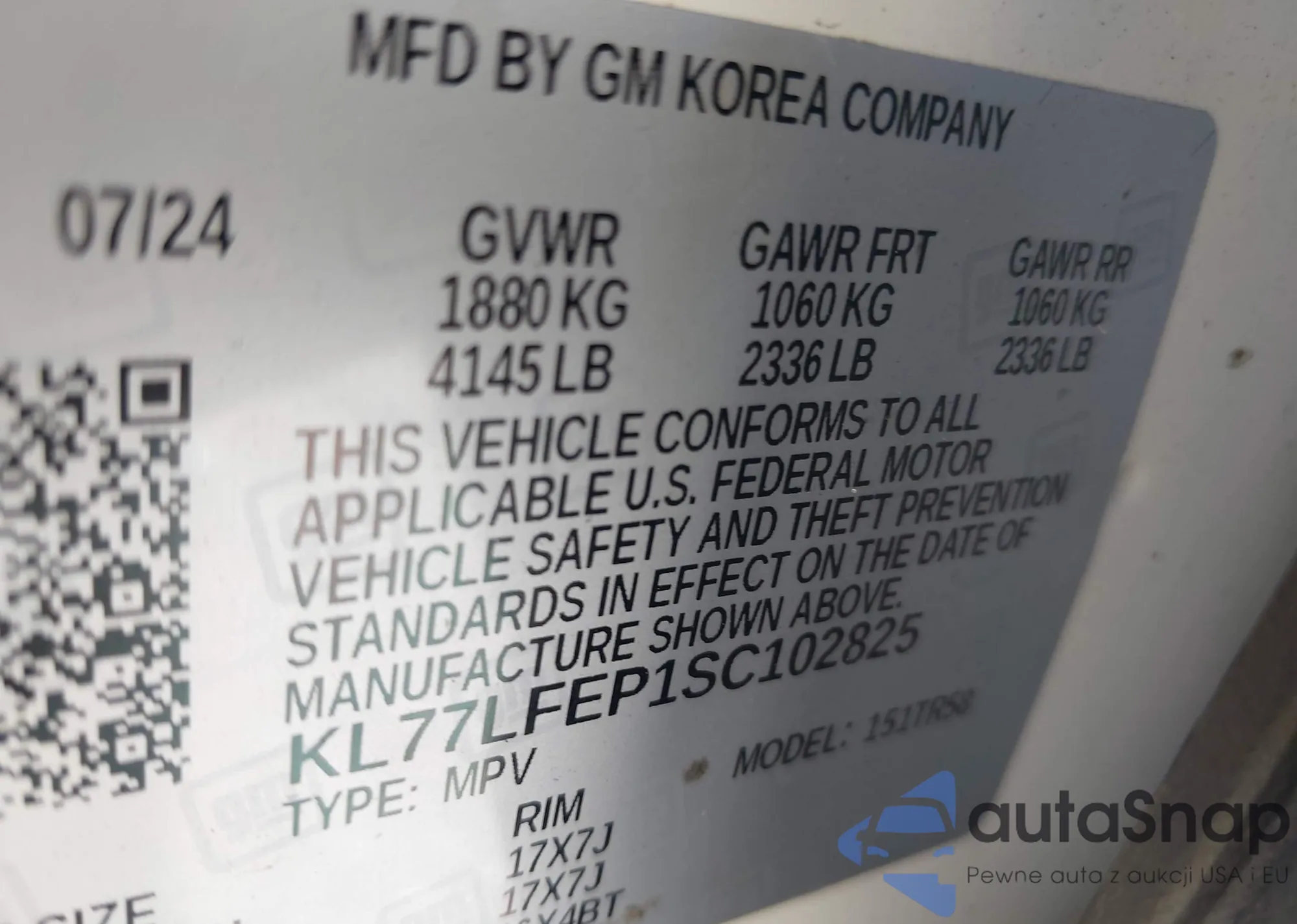 • VIN KL77LFEP1SC102825