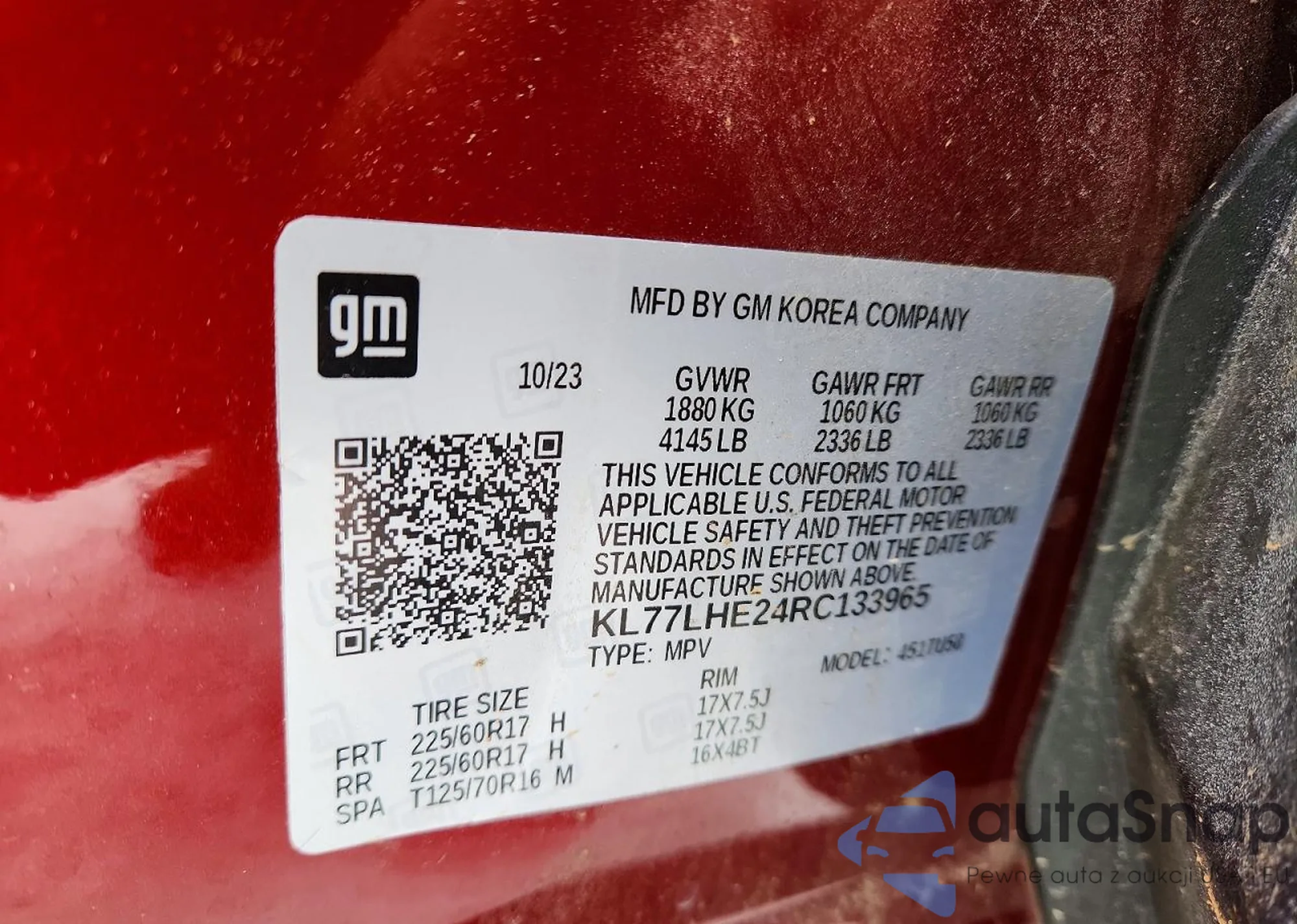 • VIN KL77LHE24RC133965
