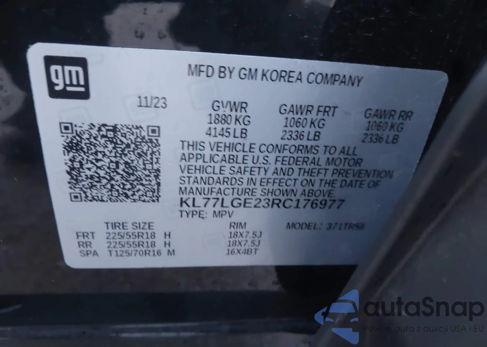 • VIN KL77LGE23RC176977