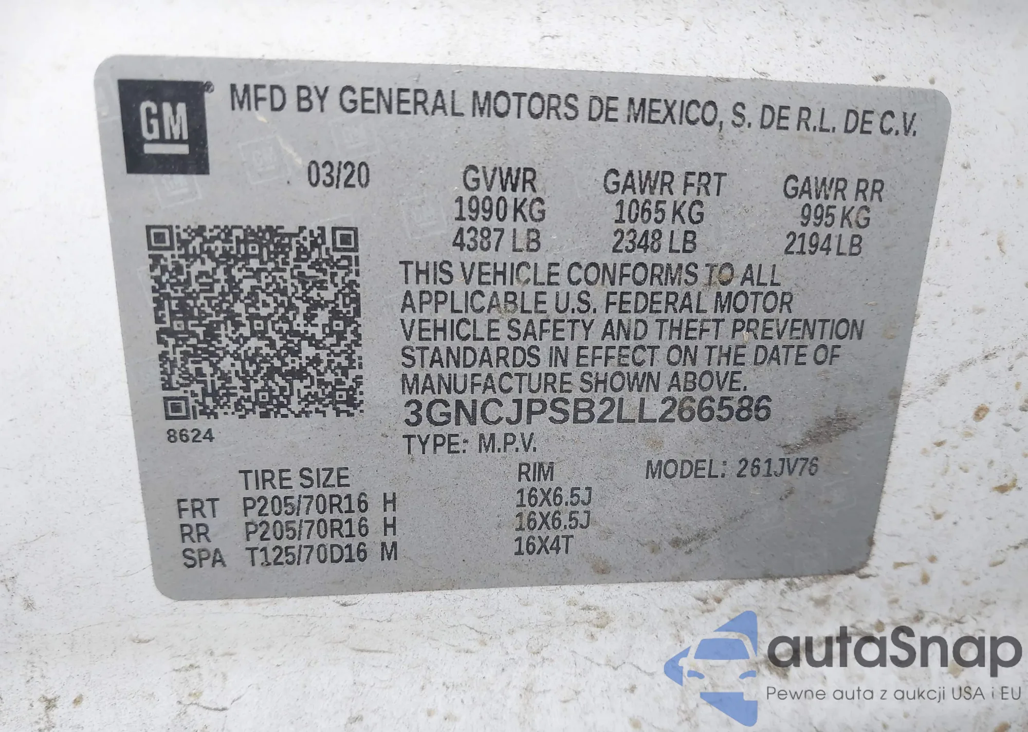 • VIN 3GNCJPSB2LL266586