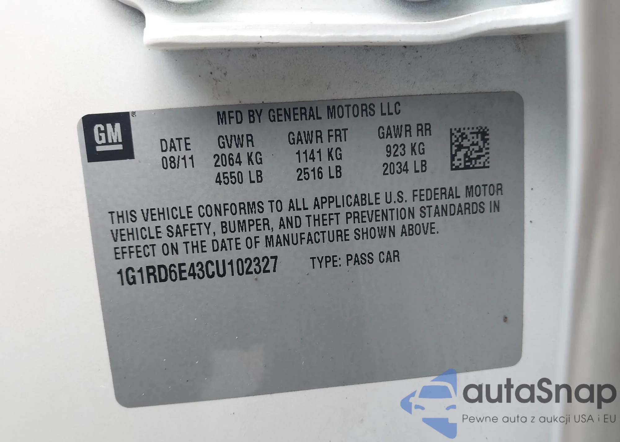 LOT: 44230816 VIN: 1G1RD6E47BU101843