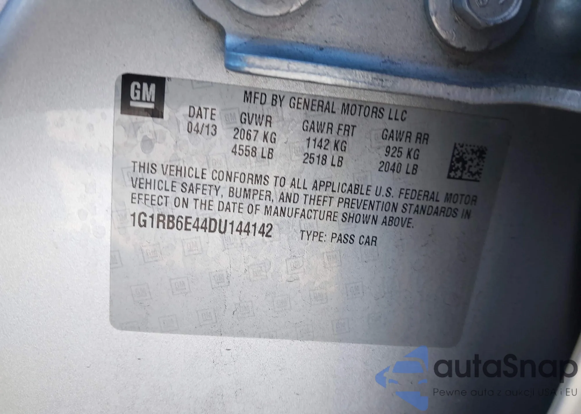 LOT: 44231748 VIN: 1G1RB6E44DU144142