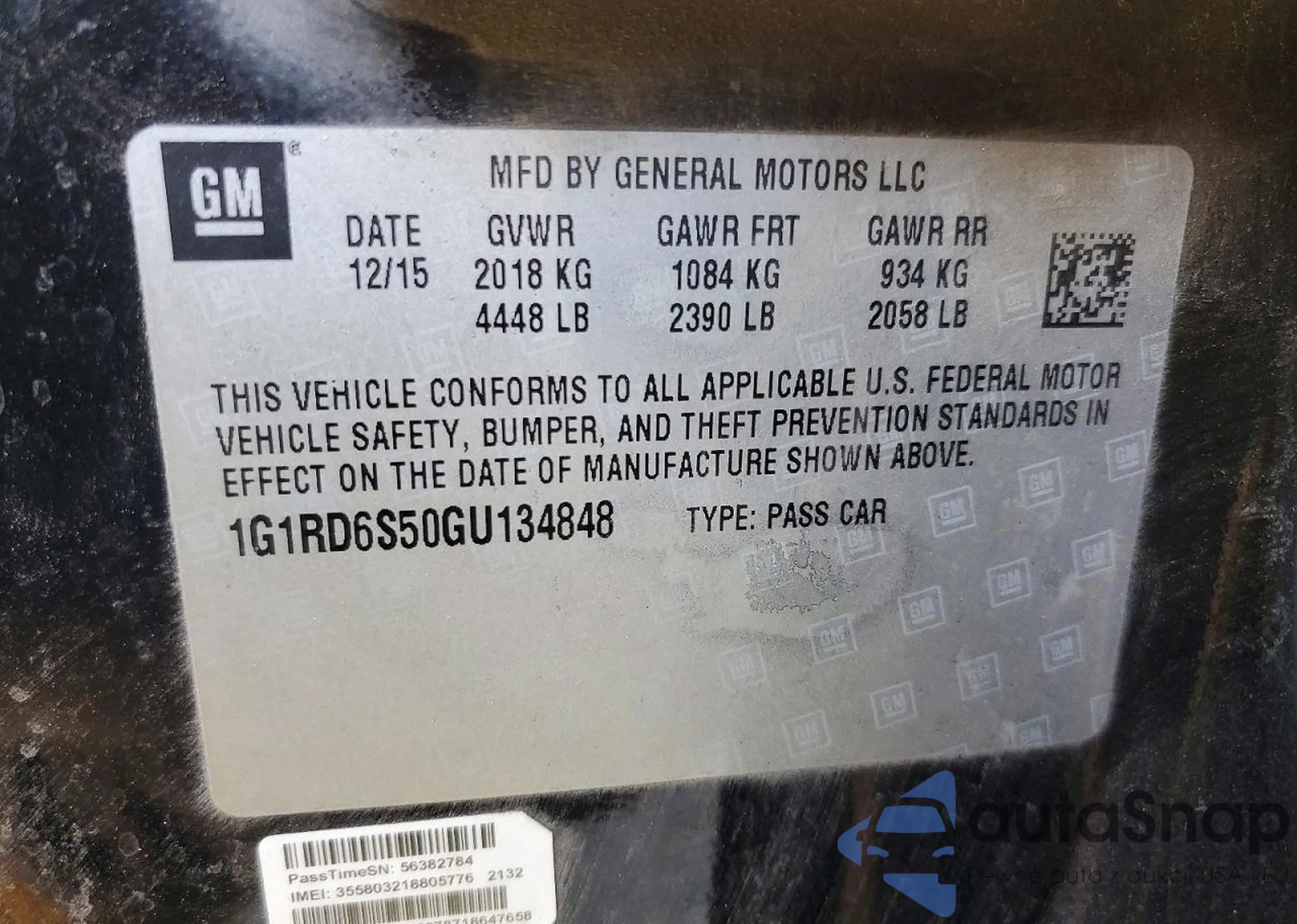 LOT: 76056985 VIN: 1G1RD6S50GU134848