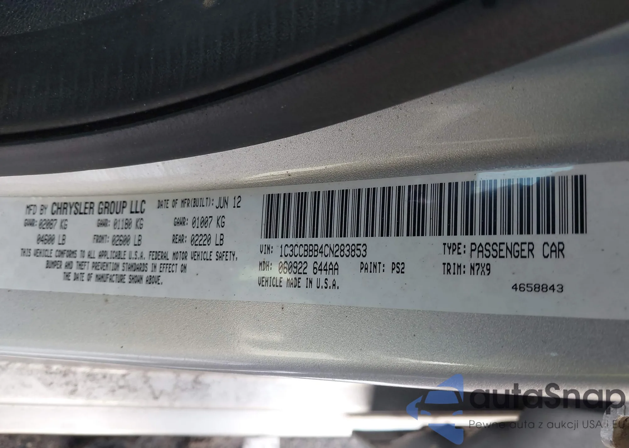 LOT: 43963604 VIN: 1C3CCBBB4CN283853