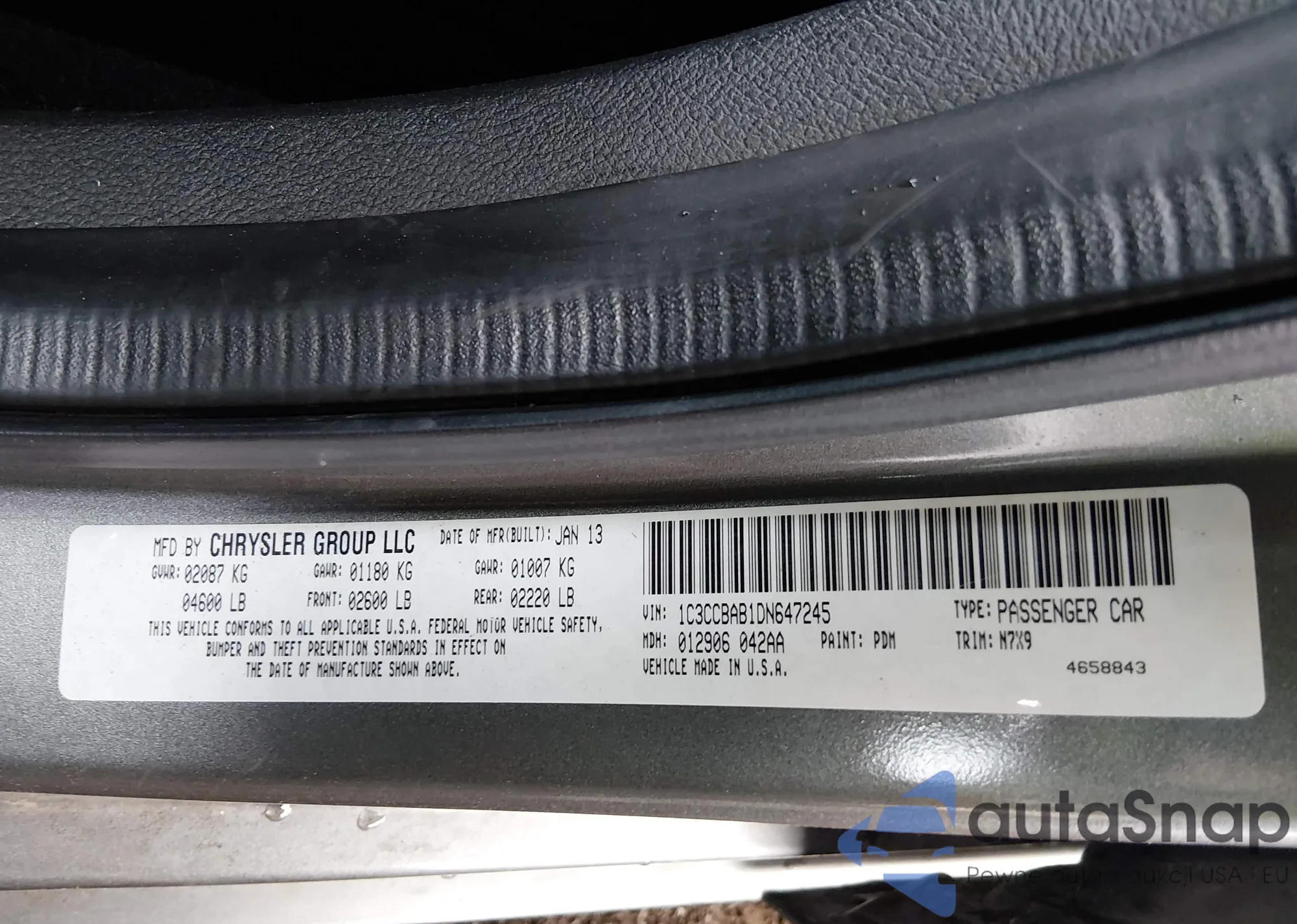 • VIN 1C3CCBAB1DN647245