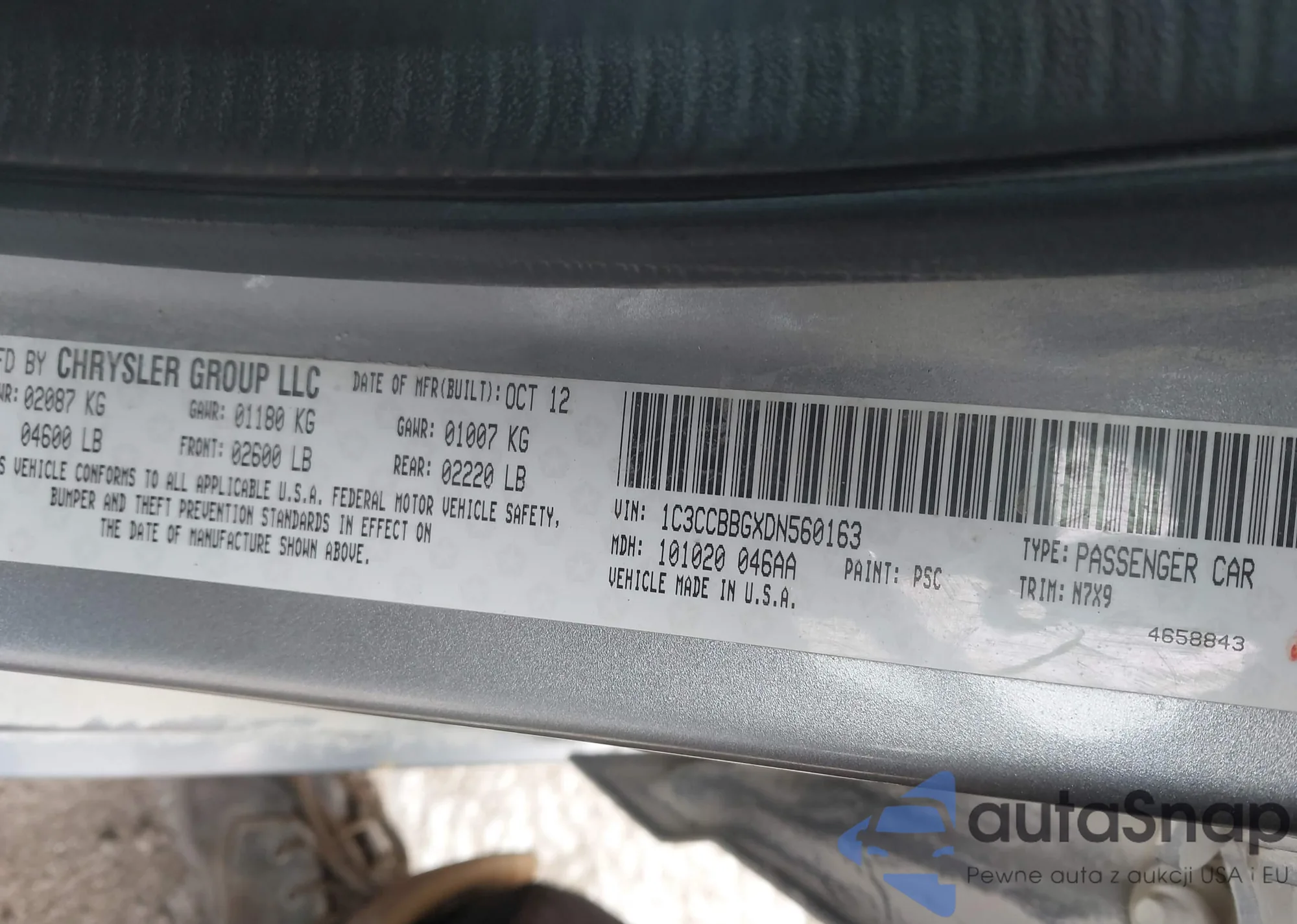 LOT: 44008346 VIN: 1C3CCBAB7DN686065