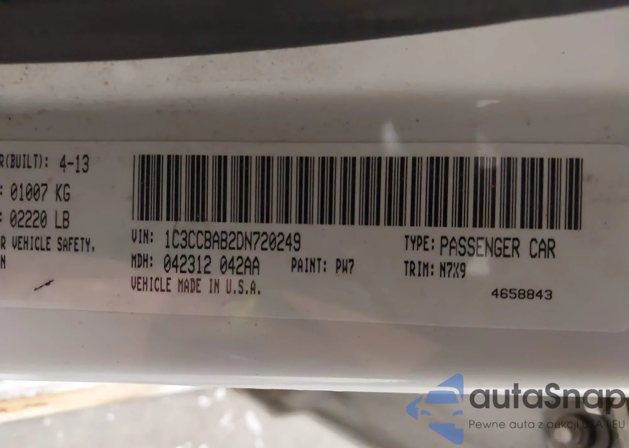 • VIN 1C3CCBAB2DN720249