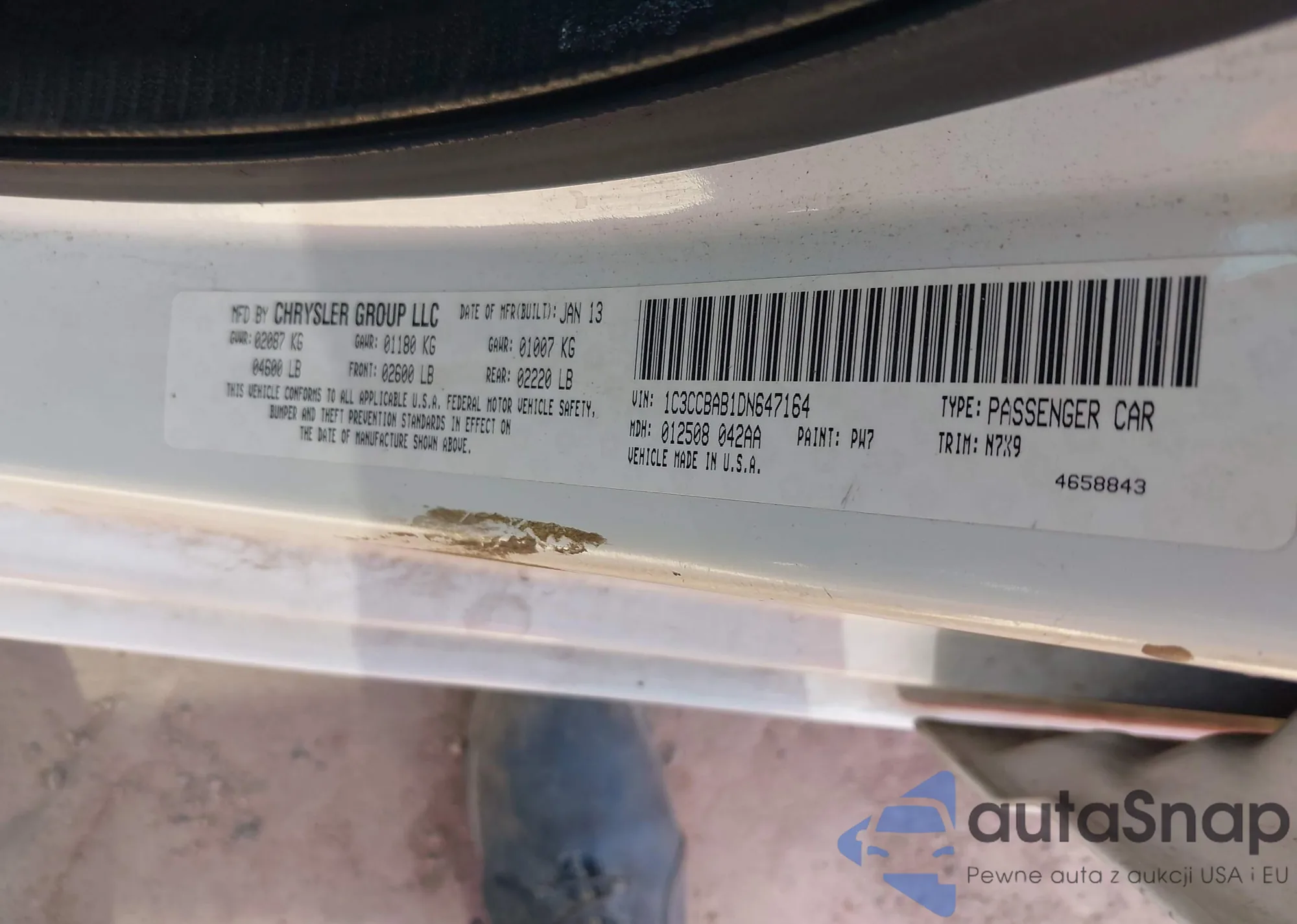 LOT: 44375582 VIN: 1C3CCBBB4DN651868
