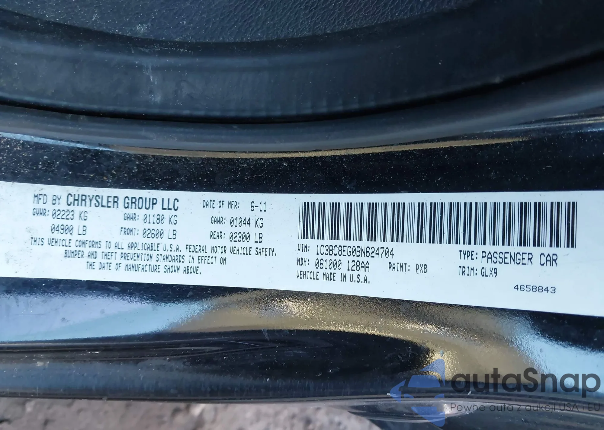 • VIN 1C3BC8EG0BN624704