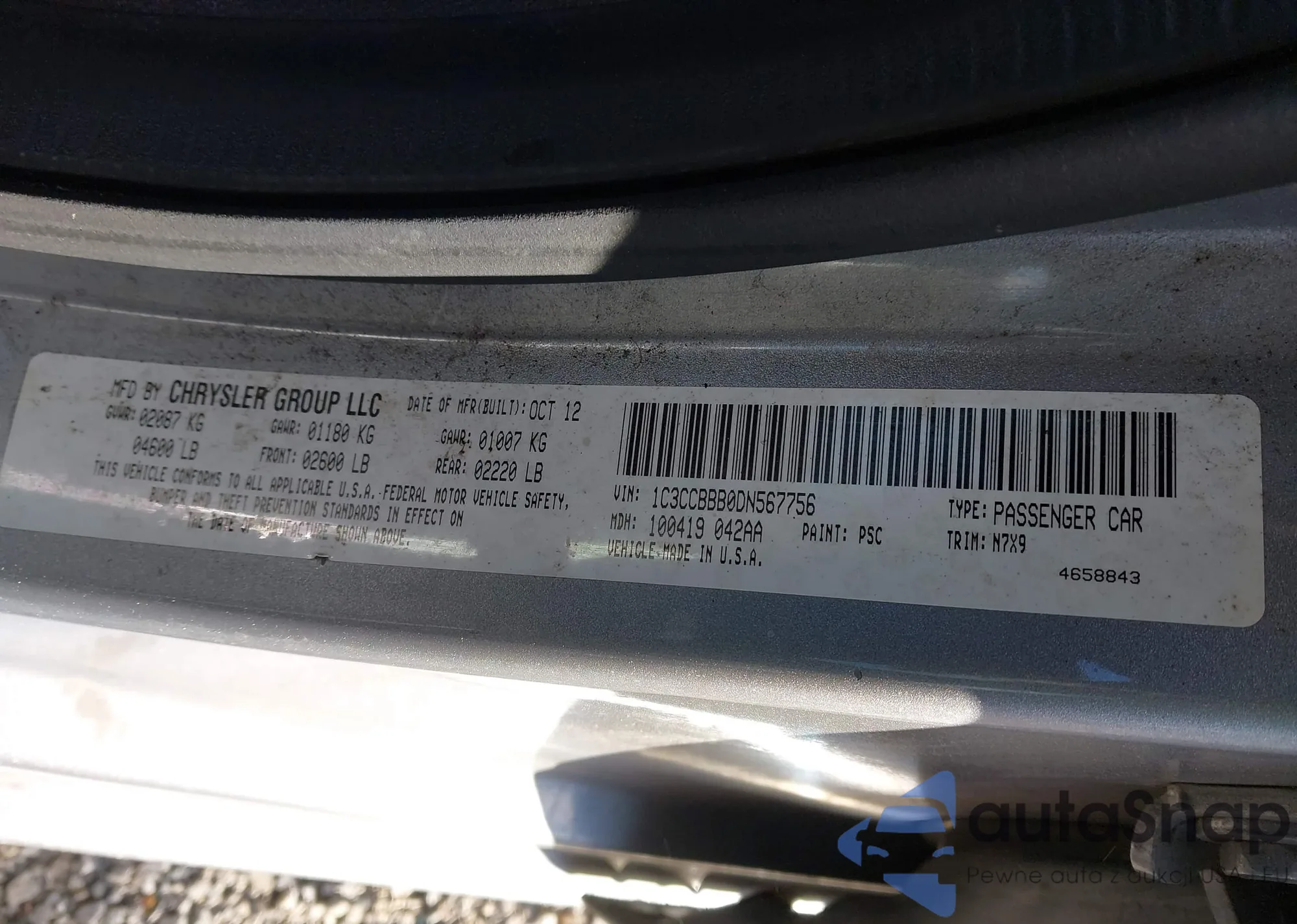 LOT: 43966869 VIN: 1C3CCBBB0DN727991