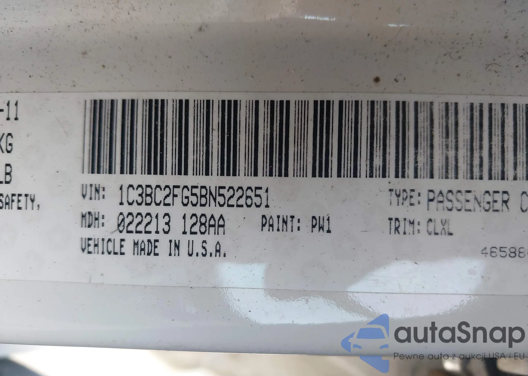 LOT: 44085961 VIN: 1C3BC2FG5BN522651