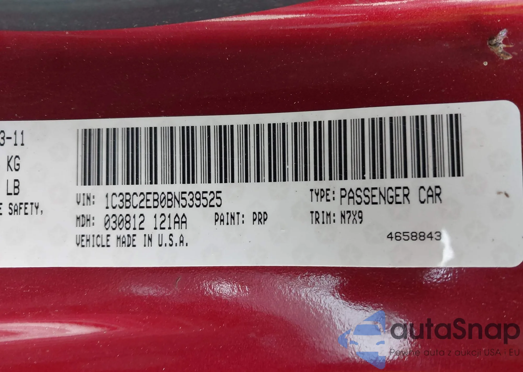 LOT: 44172821 VIN: 1C3BC2EB0BN539525