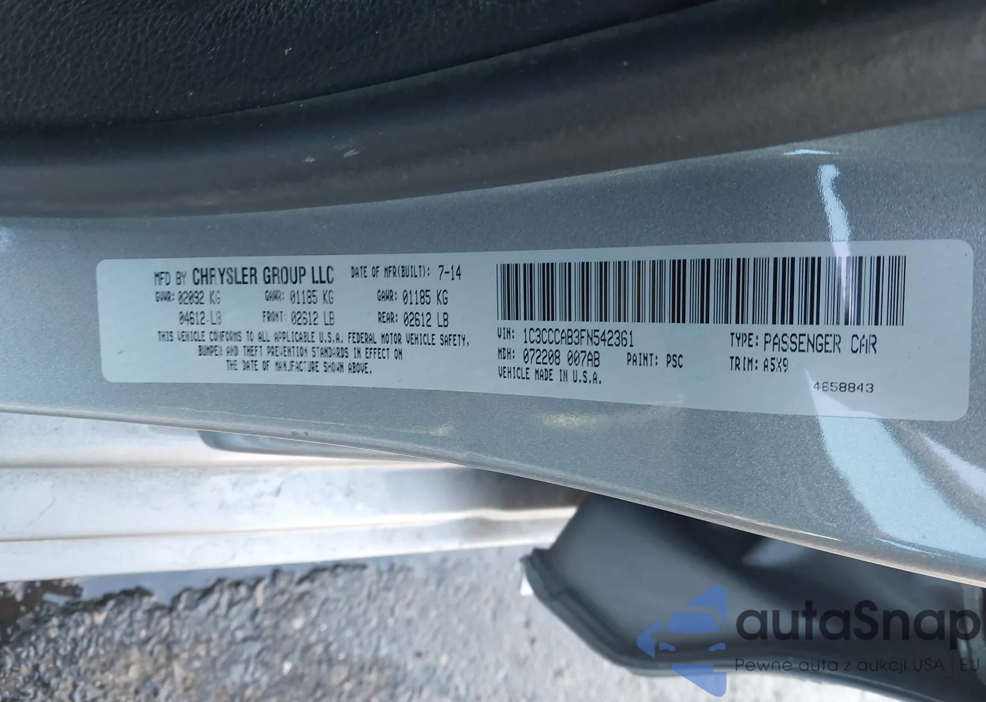 LOT: 43954296 VIN: 1C3CCCAB3FN542361