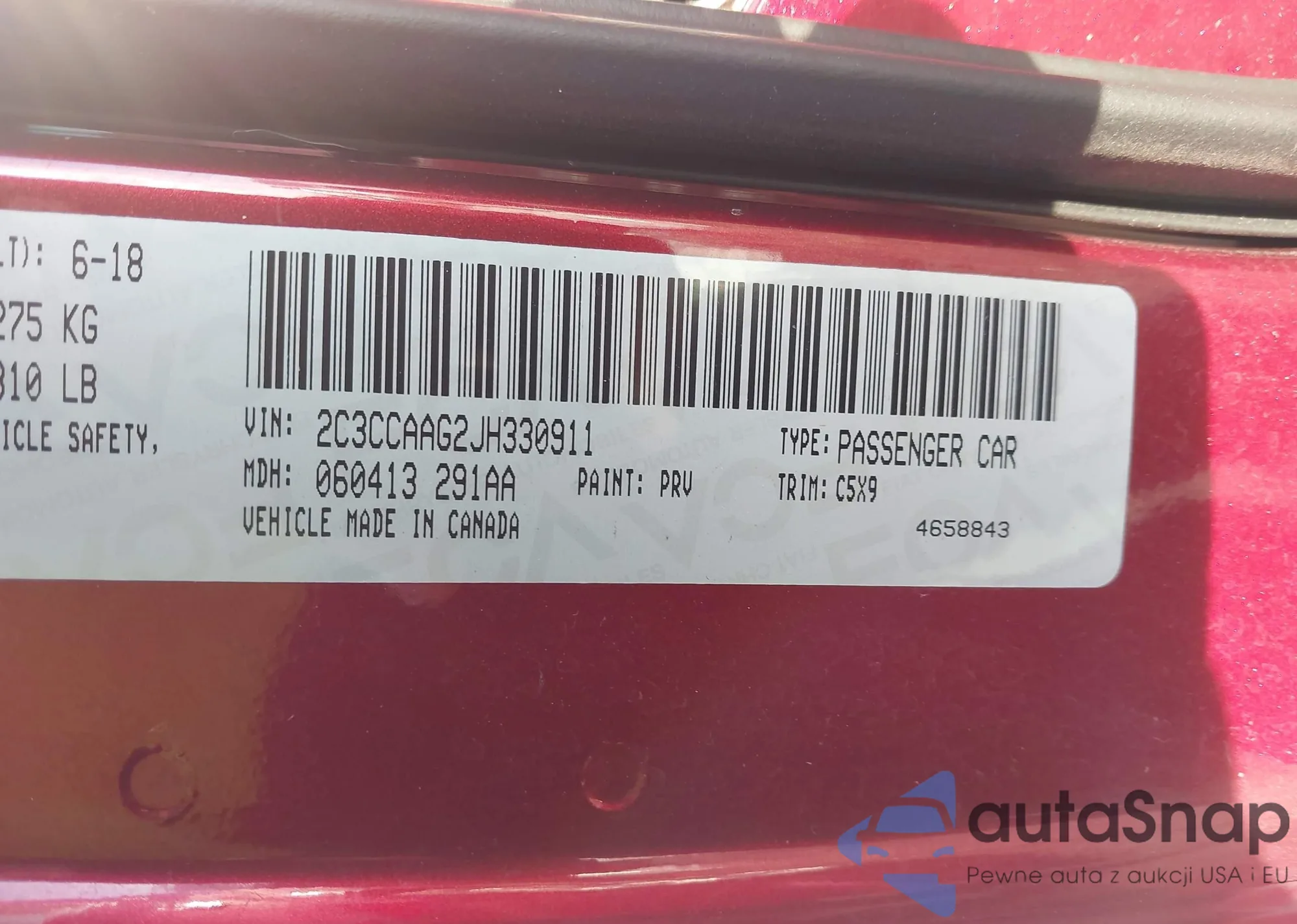 • VIN 2C3CCAAG2JH330911