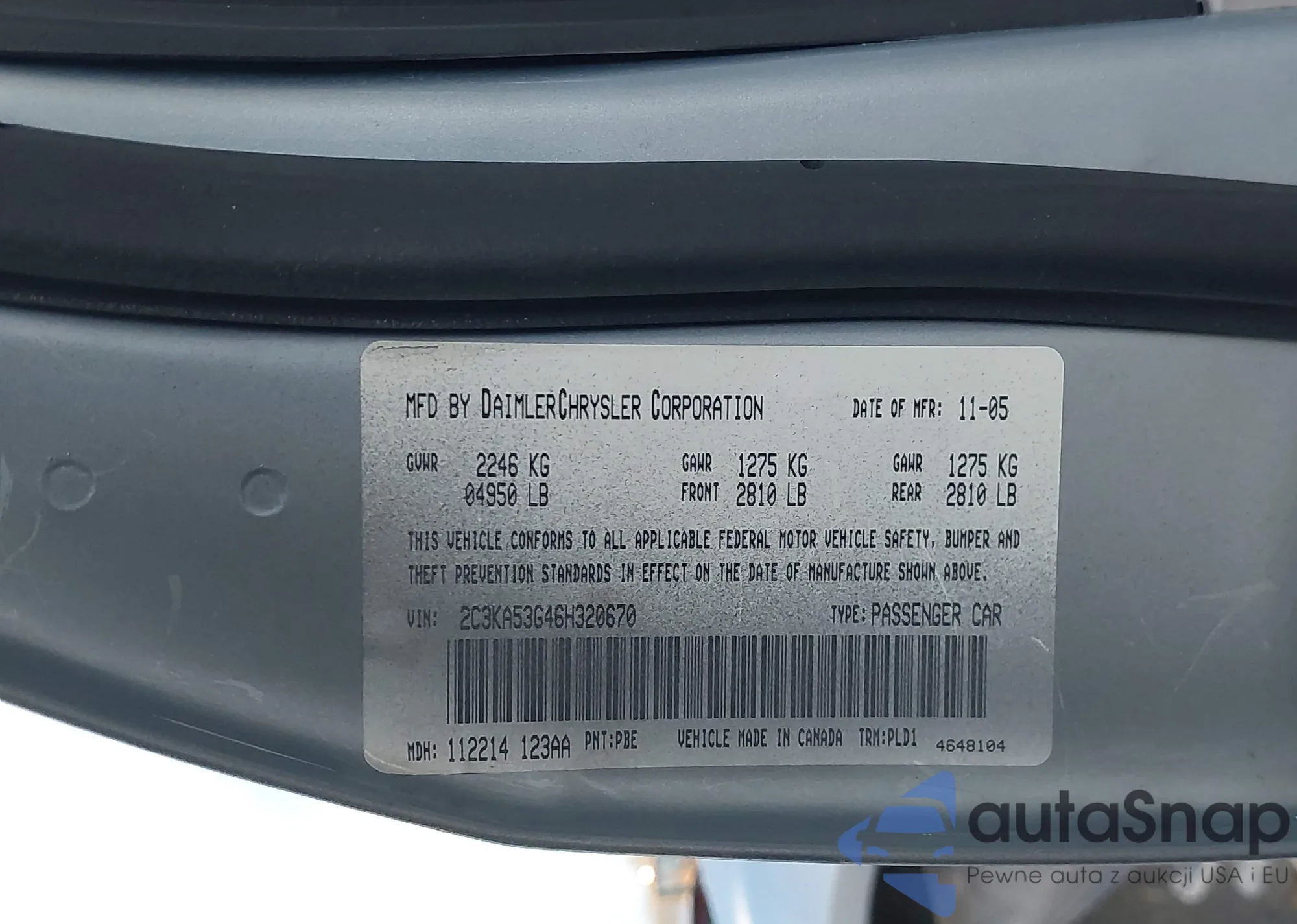 • VIN 2C3KA53G46H320670