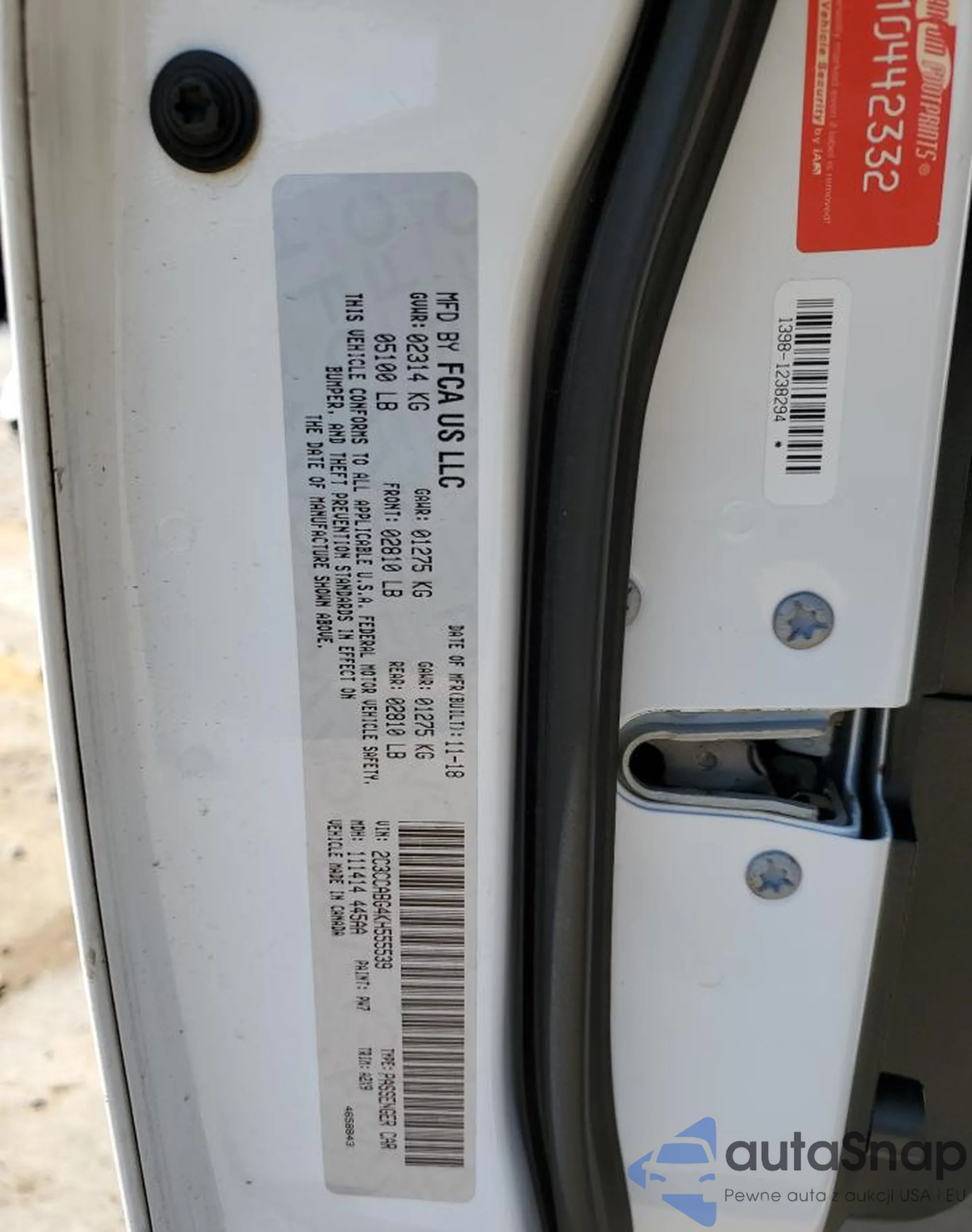• VIN 2C3CCAAG5KH639354