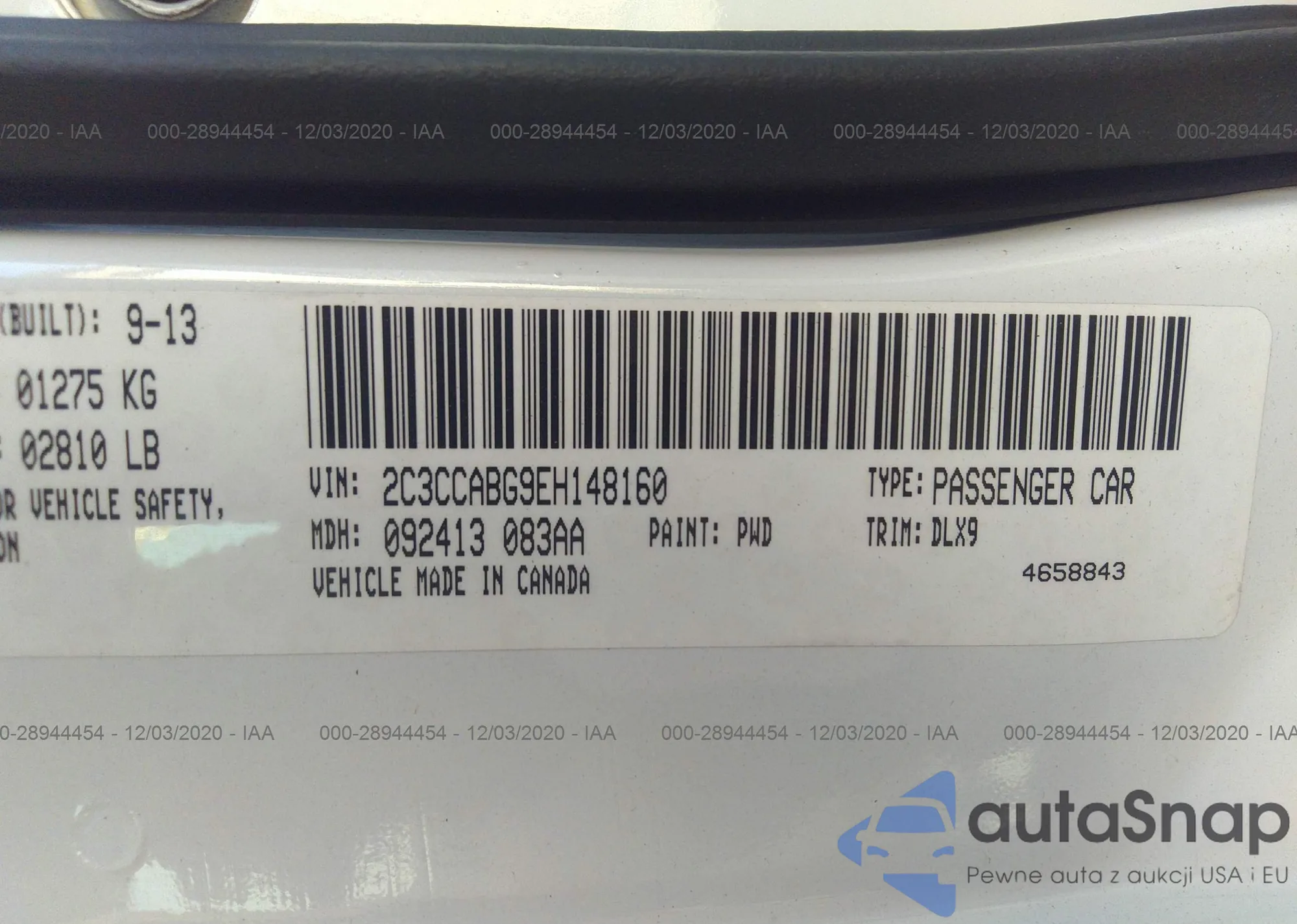 LOT: 28944454 VIN: 2C3CCABG9EH148160