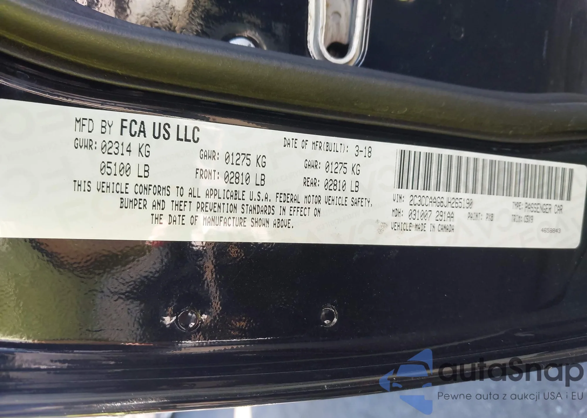 • VIN 2C3CCAAG6JH265190