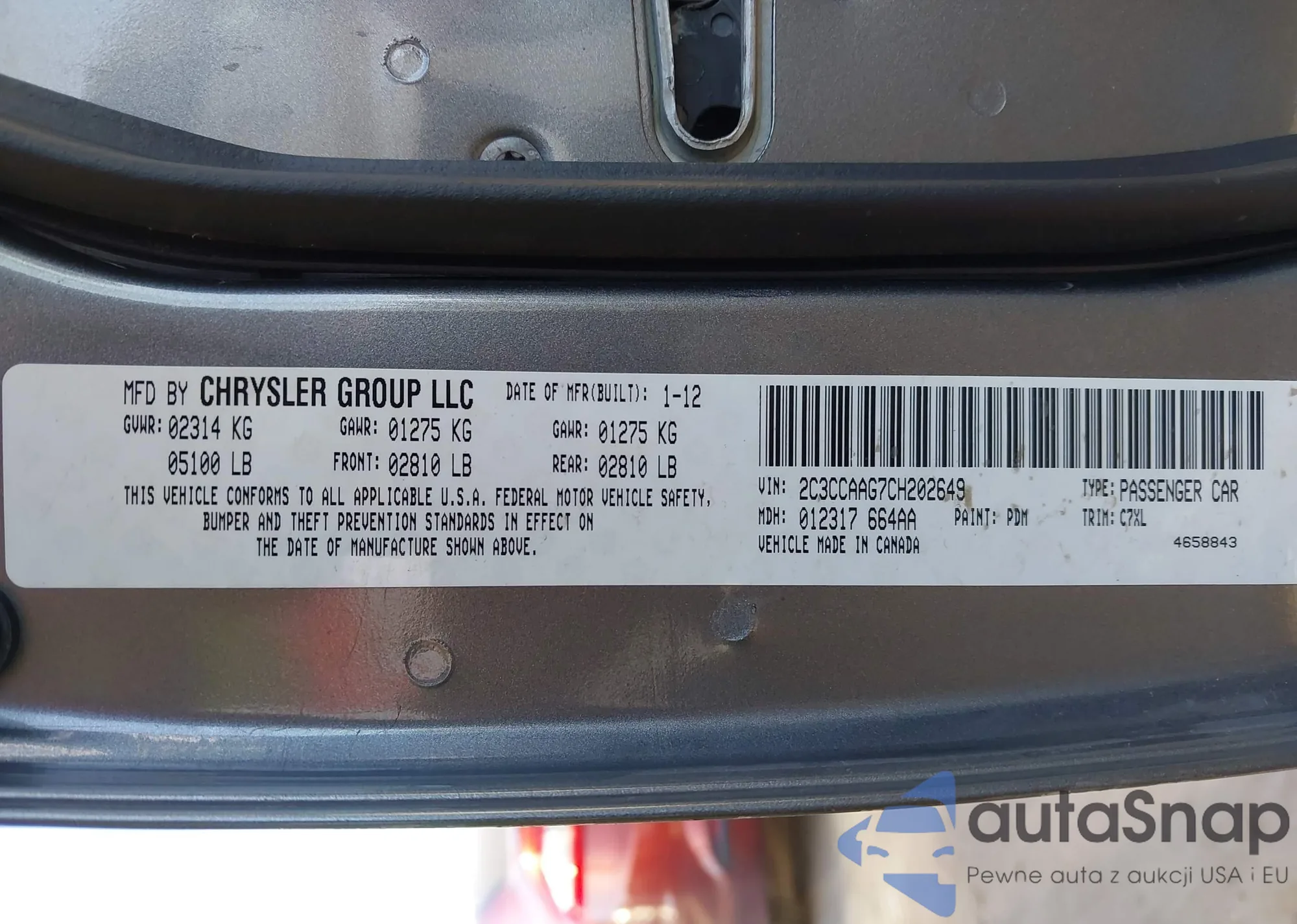 • VIN 2C3CCAAG7CH202649