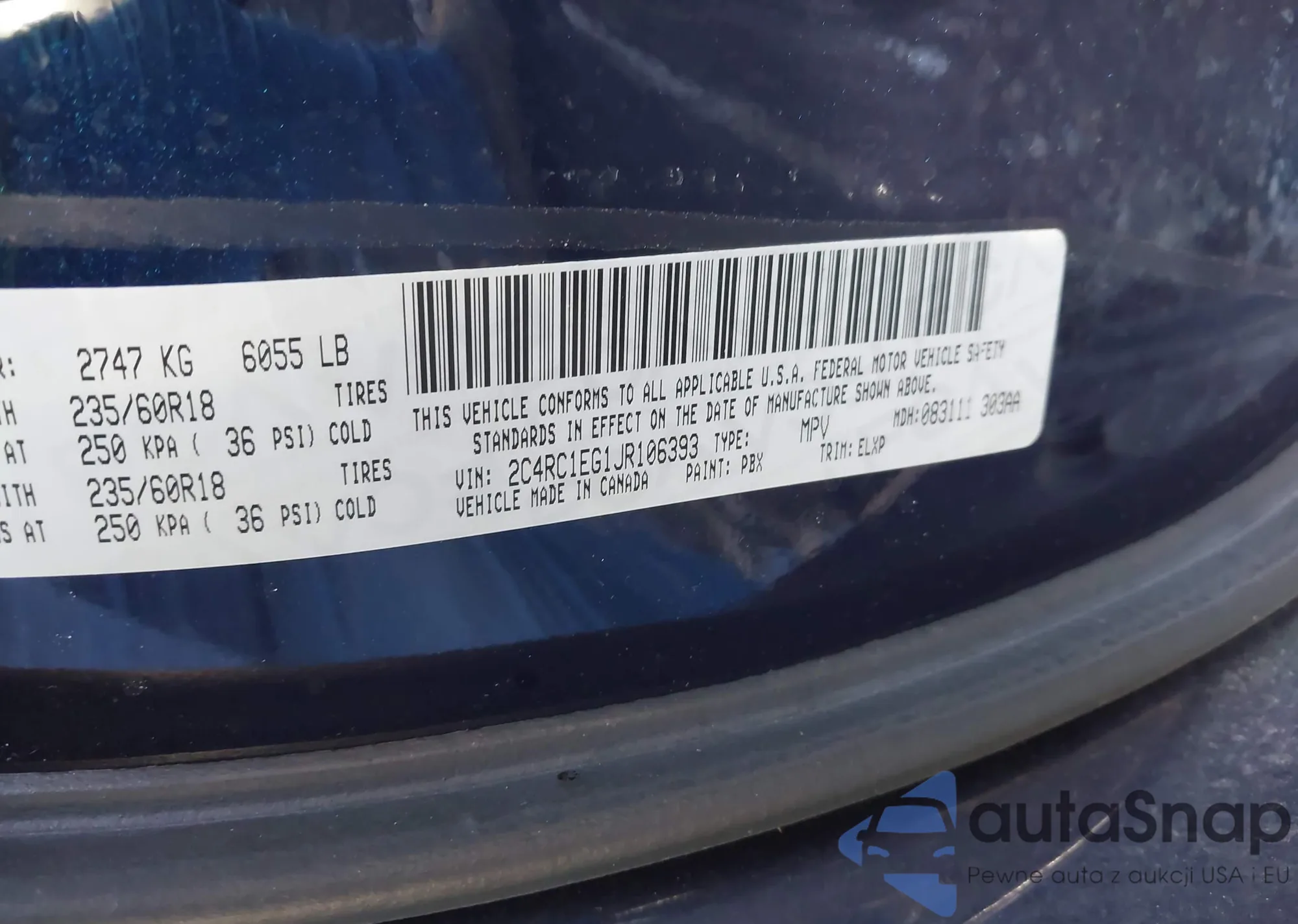 • VIN 2C4RC1EG1JR106393