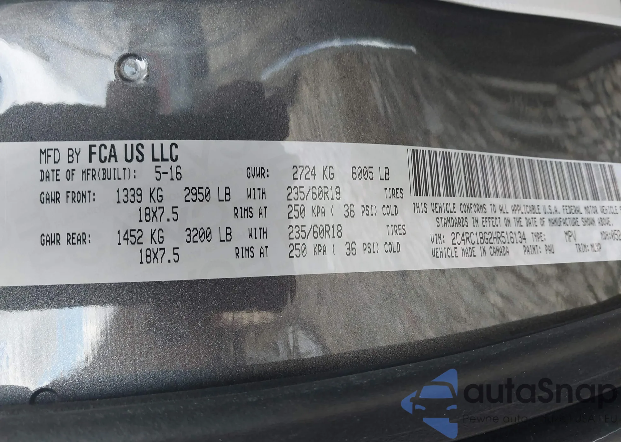 • VIN 2C4RC1BG2HR516134