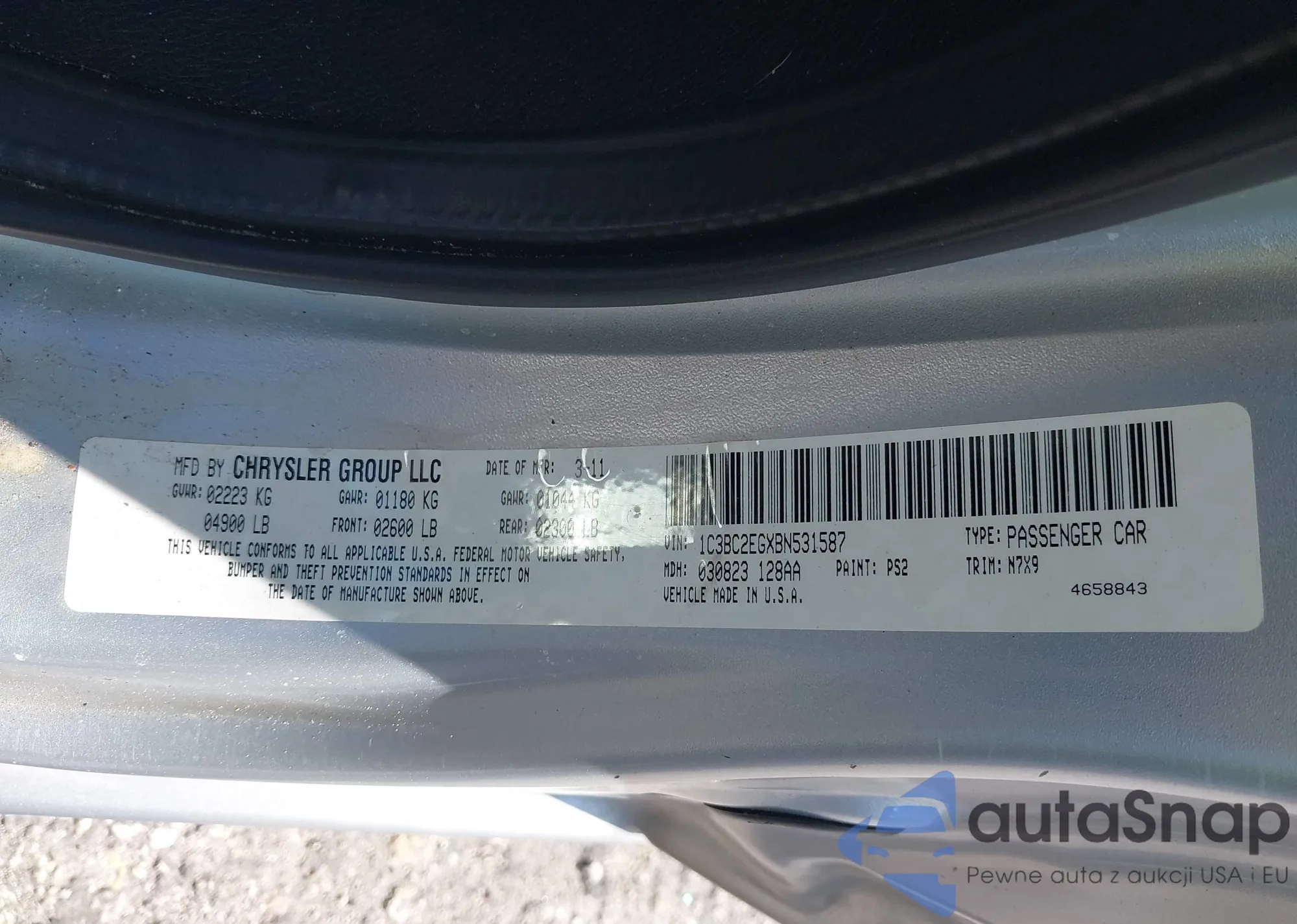 LOT: 44225364 VIN: 1C3BC2EGXBN531587