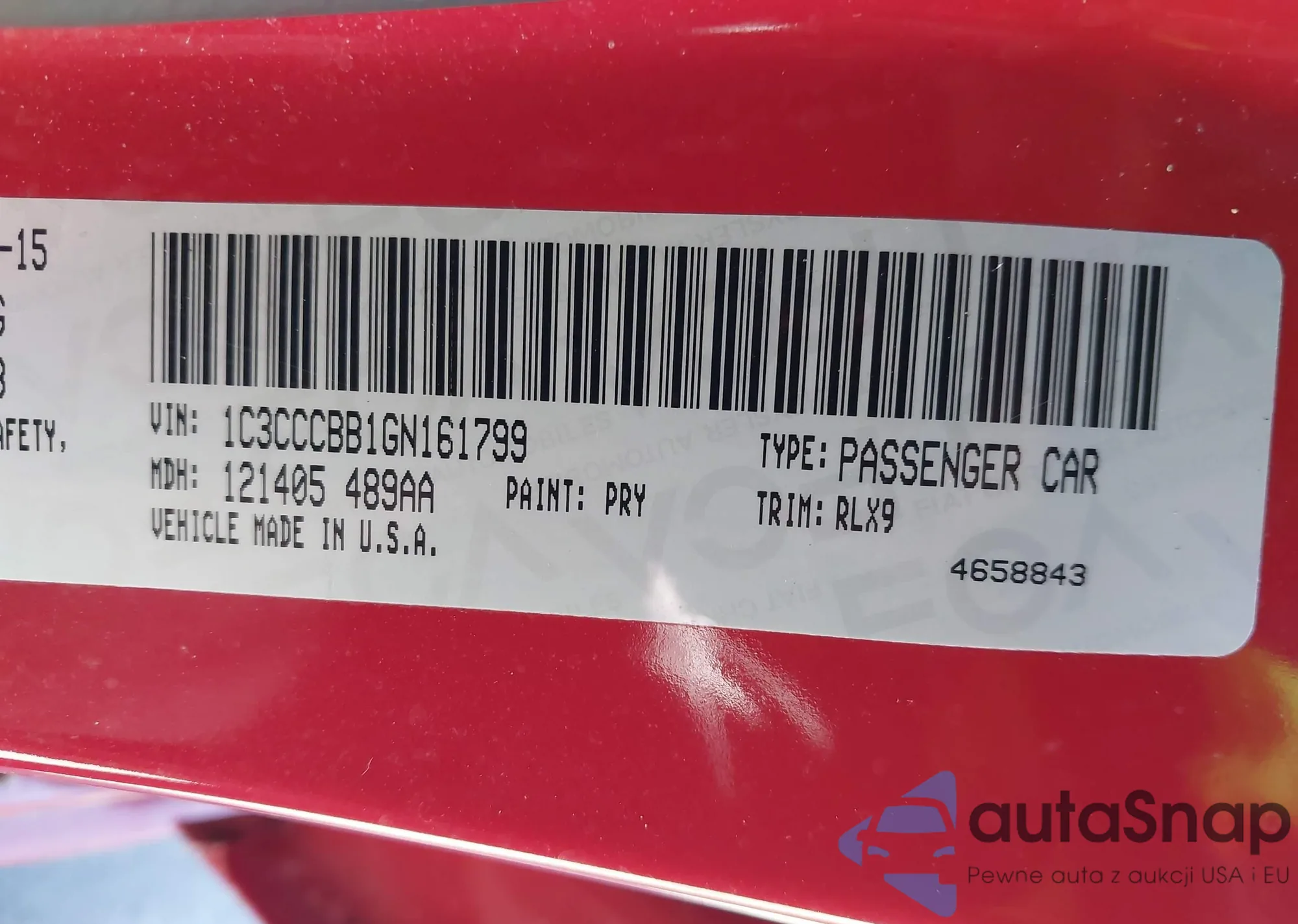 LOT: 44059617 VIN: 1C3CCCBB1GN161799