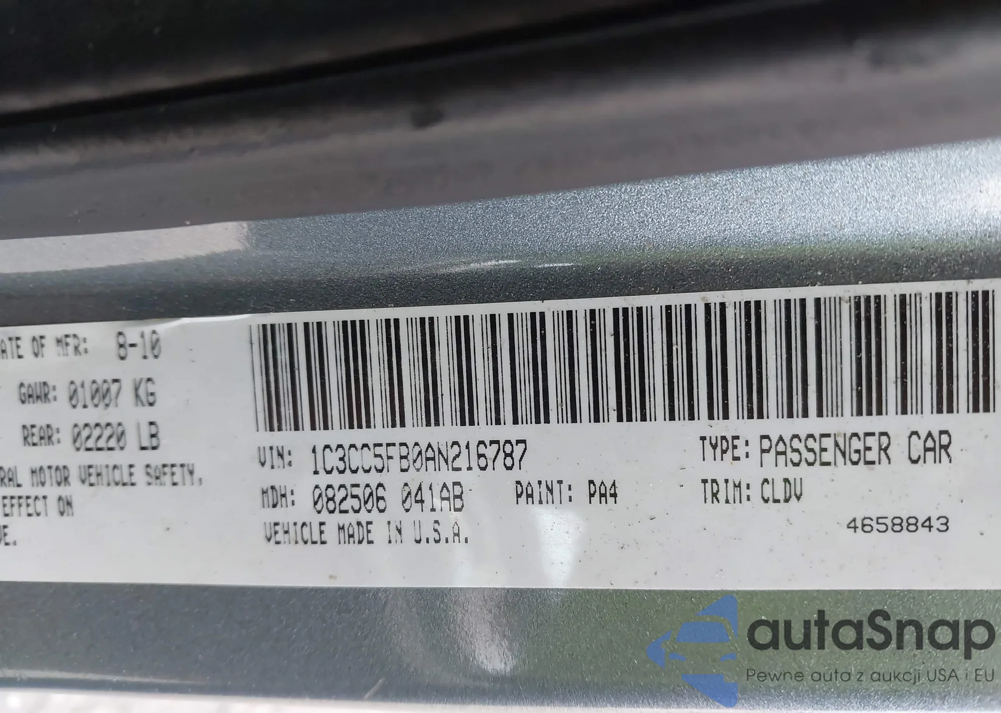 LOT: 43727534 VIN: 1C3CC5FB0AN216787