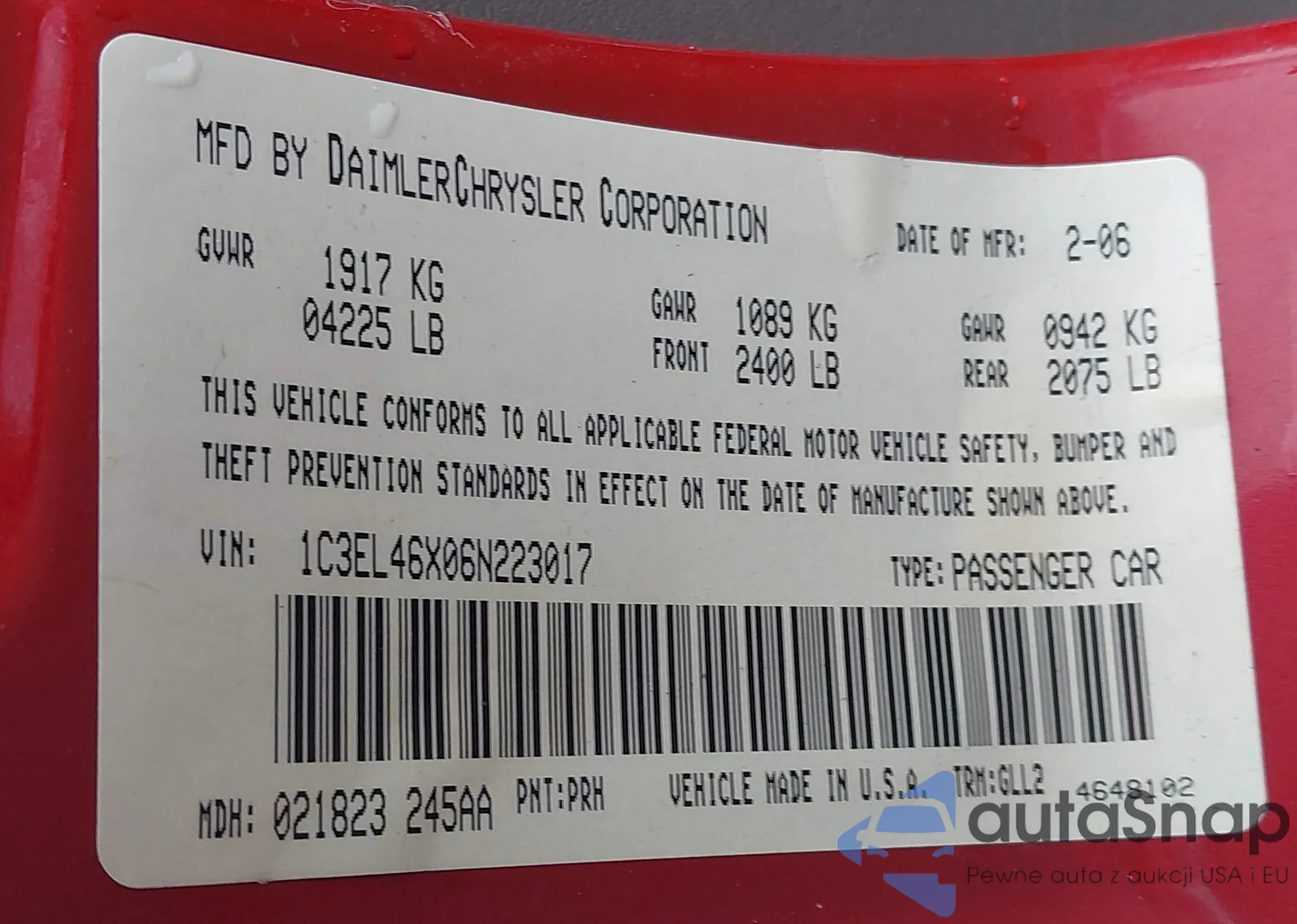 • VIN 1C3EL46X06N223017