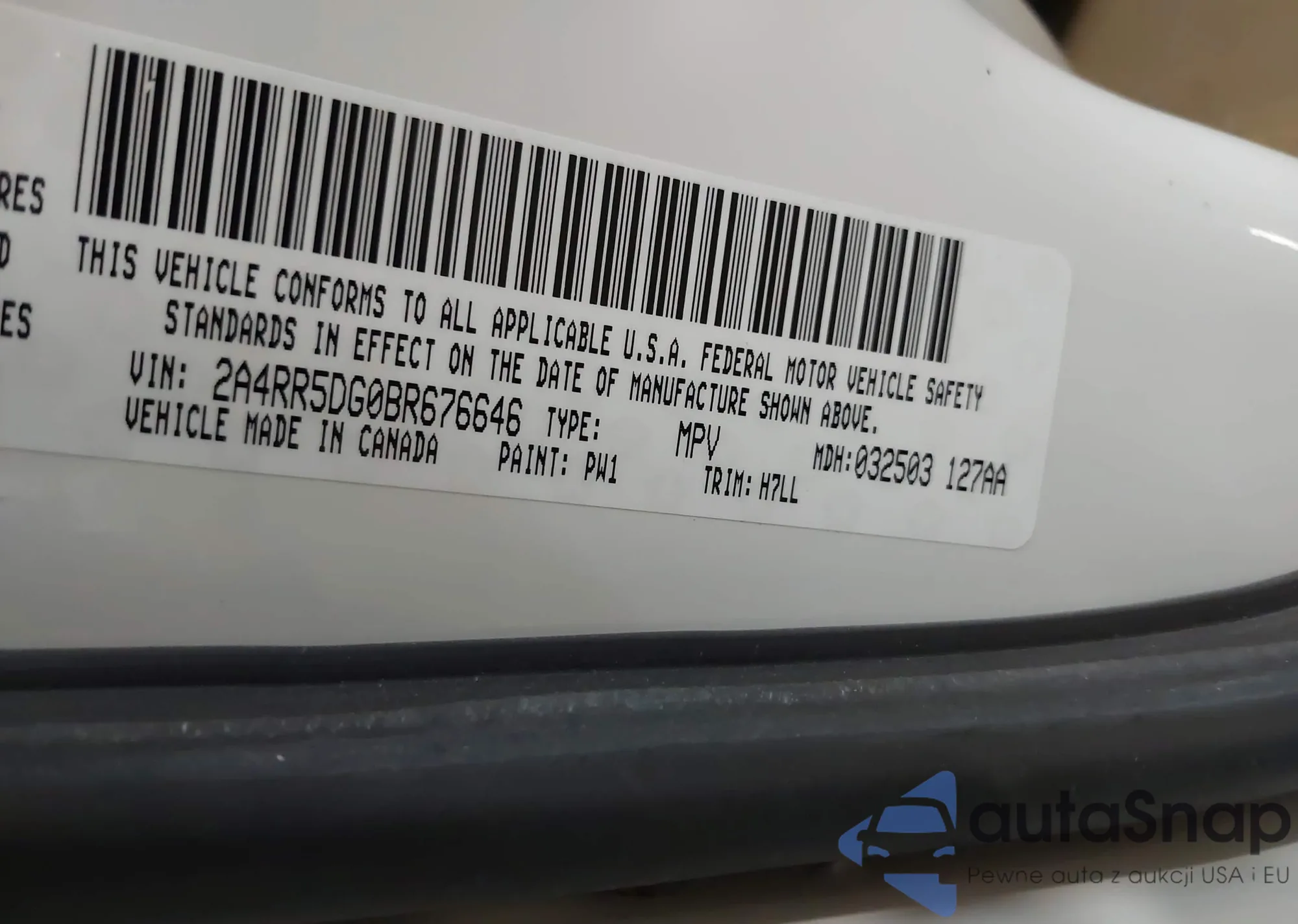 • VIN 2A4RR5DG0BR676646