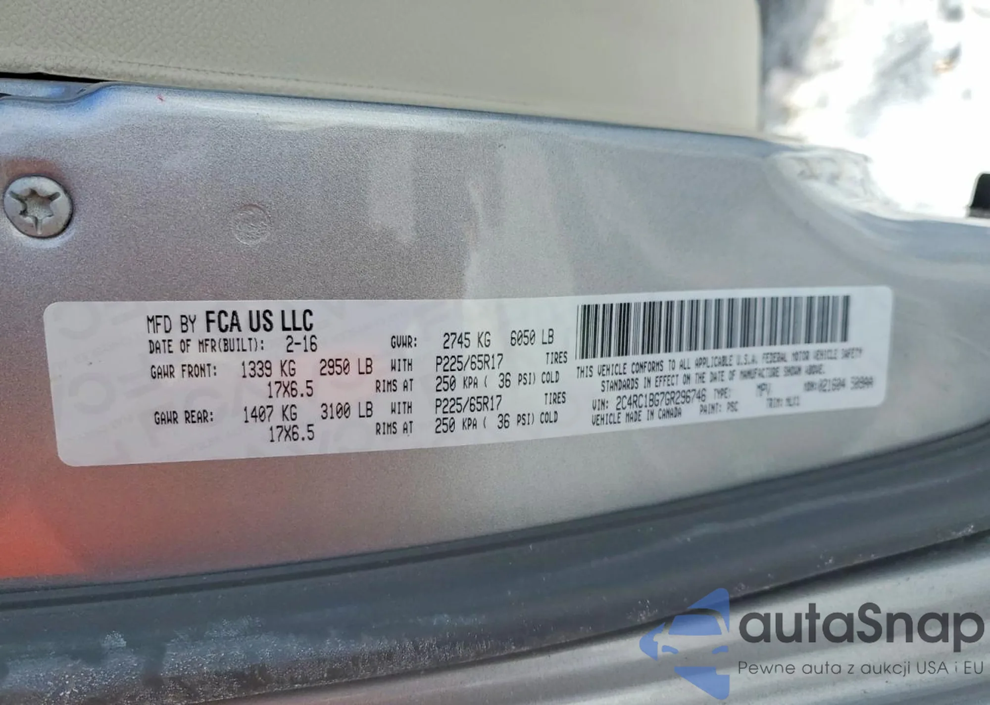 • VIN 2C4RC1BG7GR296746