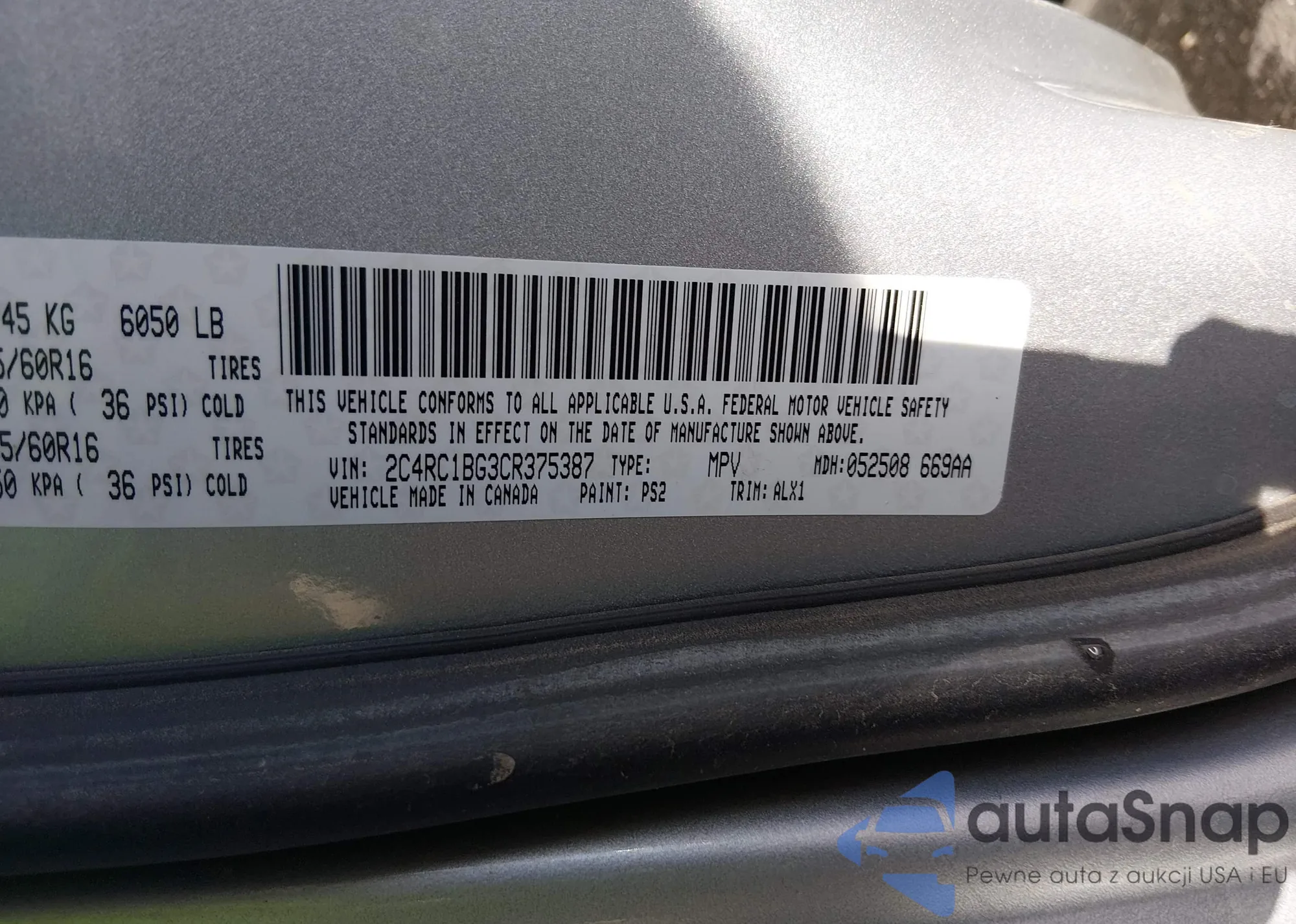 LOT: 44257584 VIN: 2C4RC1BG3CR375387