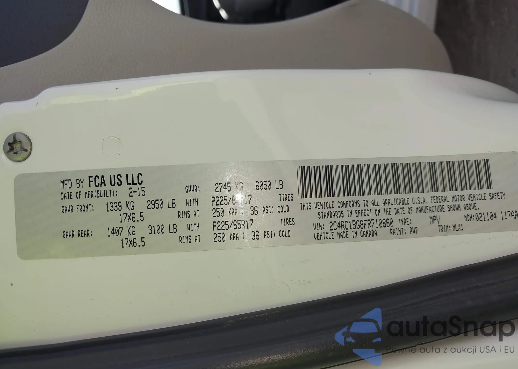 • VIN 2C4RC1BG8FR710860