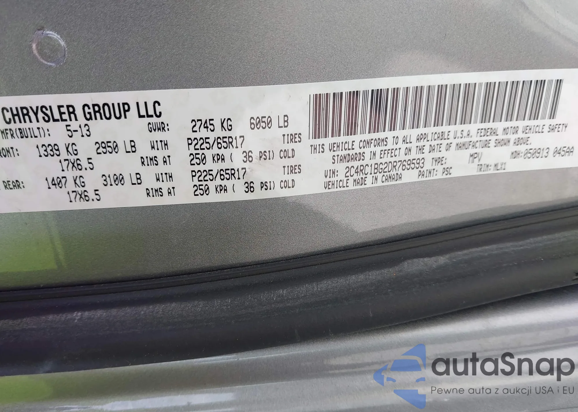 • VIN 2C4RC1BG2DR769593