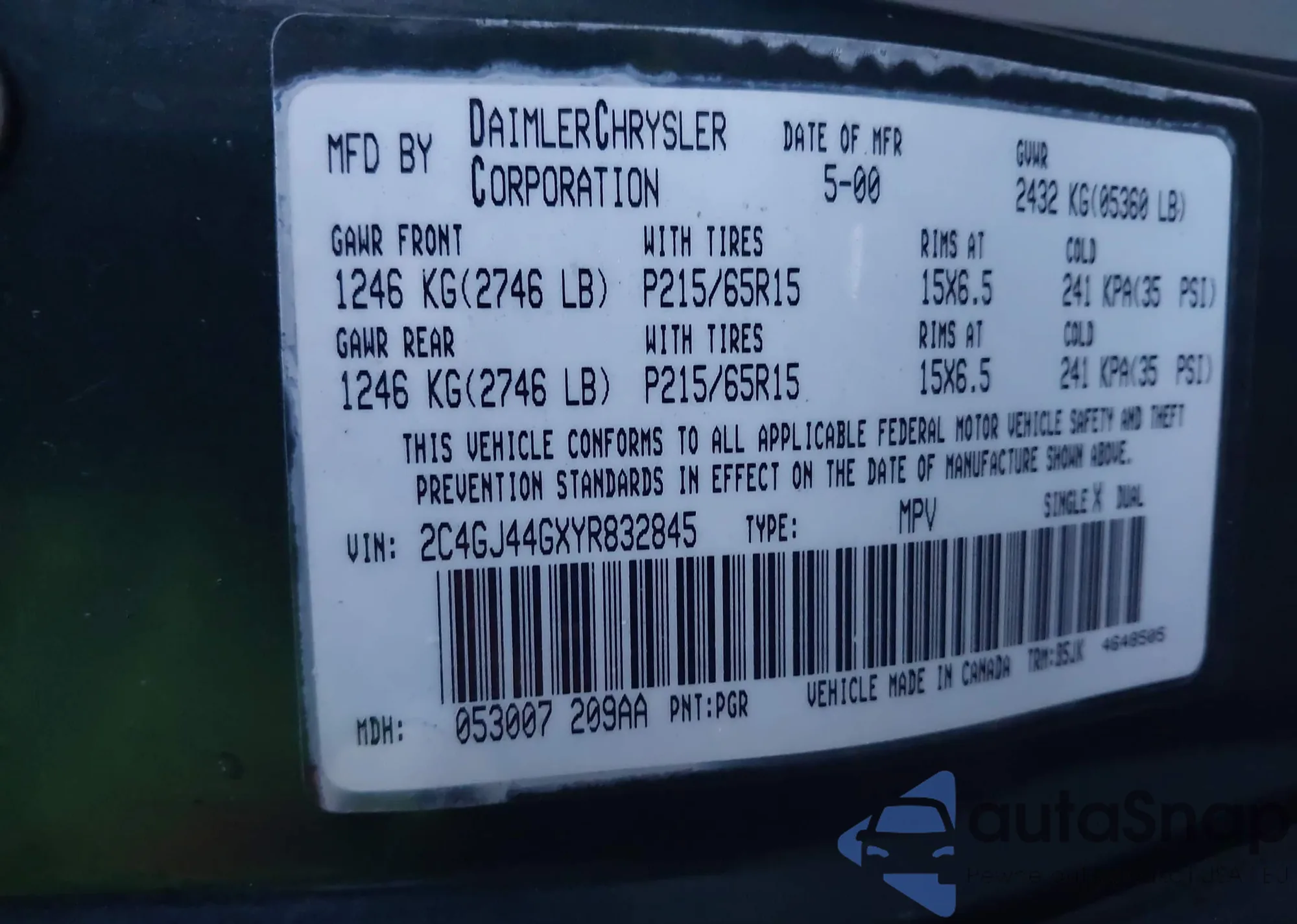 • VIN 2C4GJ44GXYR832845