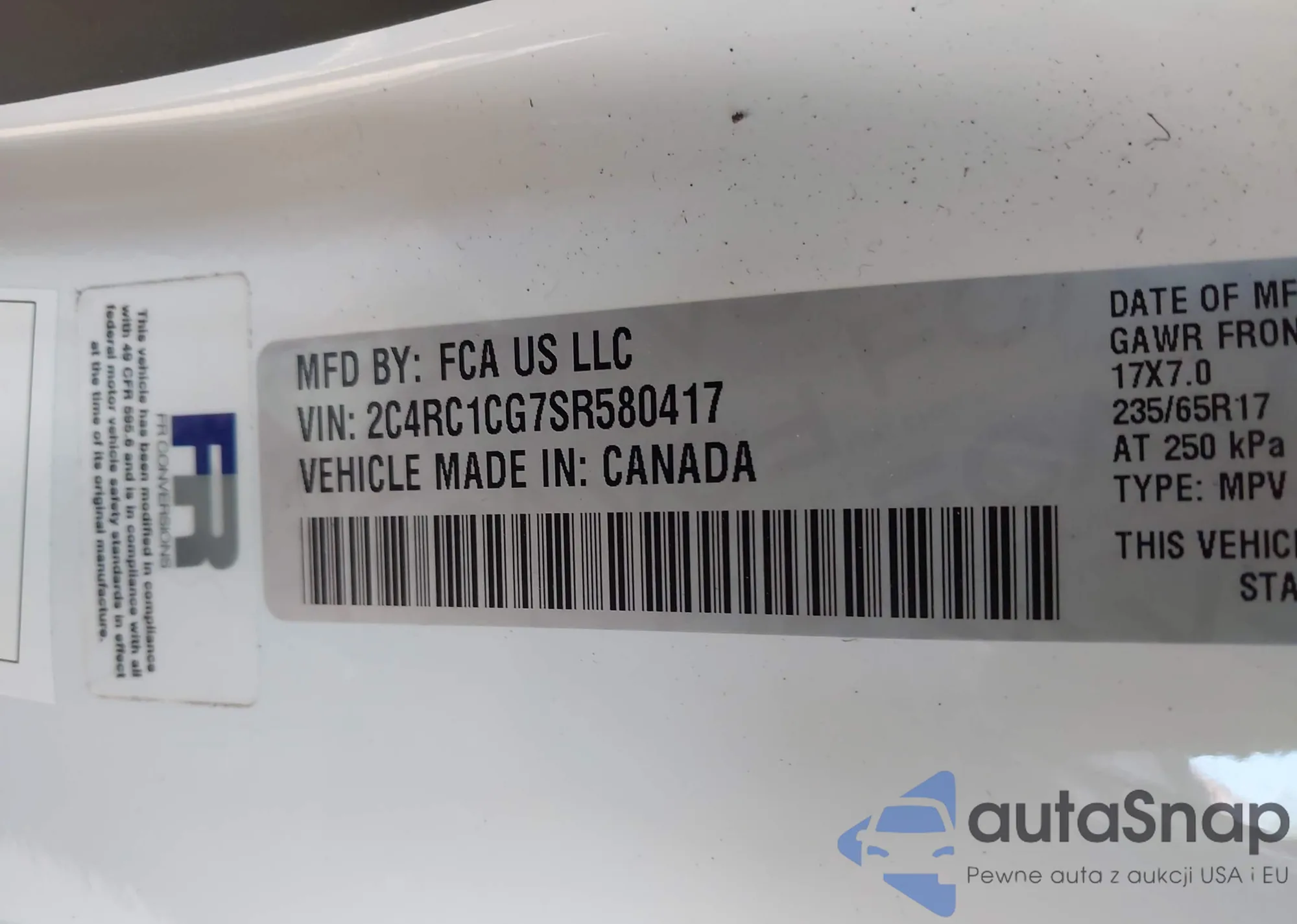 • VIN 2C4RC1CG7SR580417