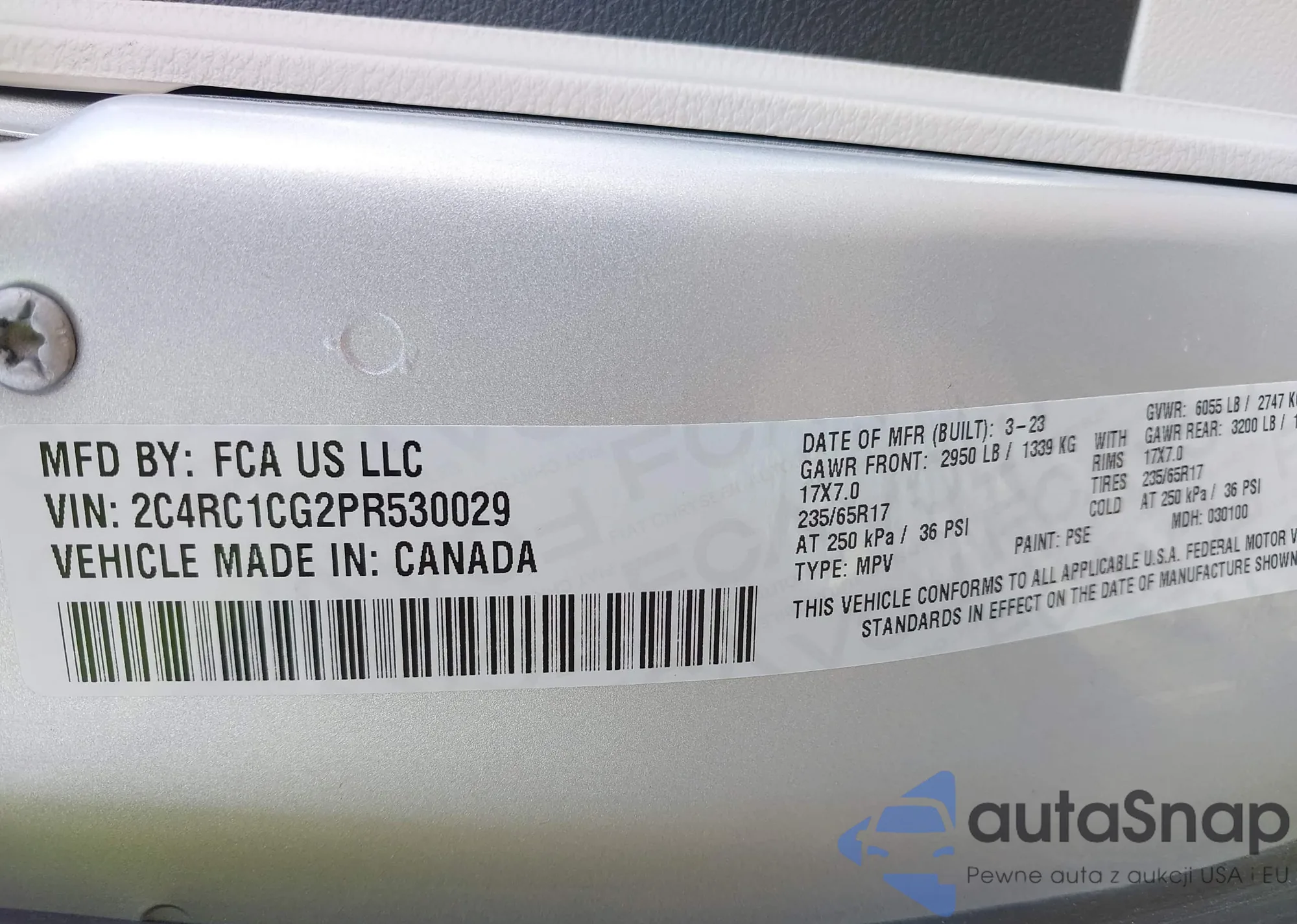• VIN 2C4RC1CG2PR530029