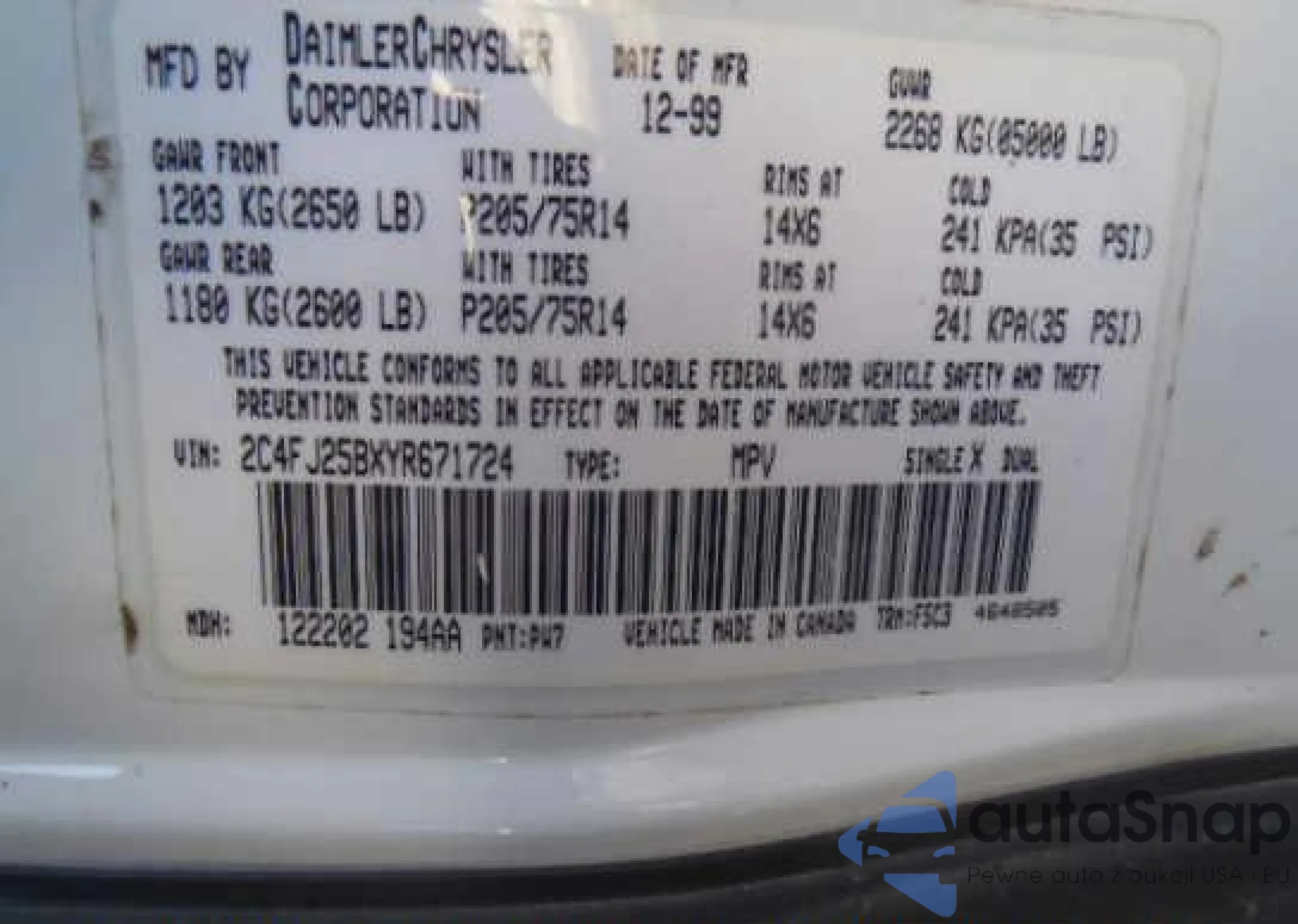 • VIN 2C4FJ25BXY4671724