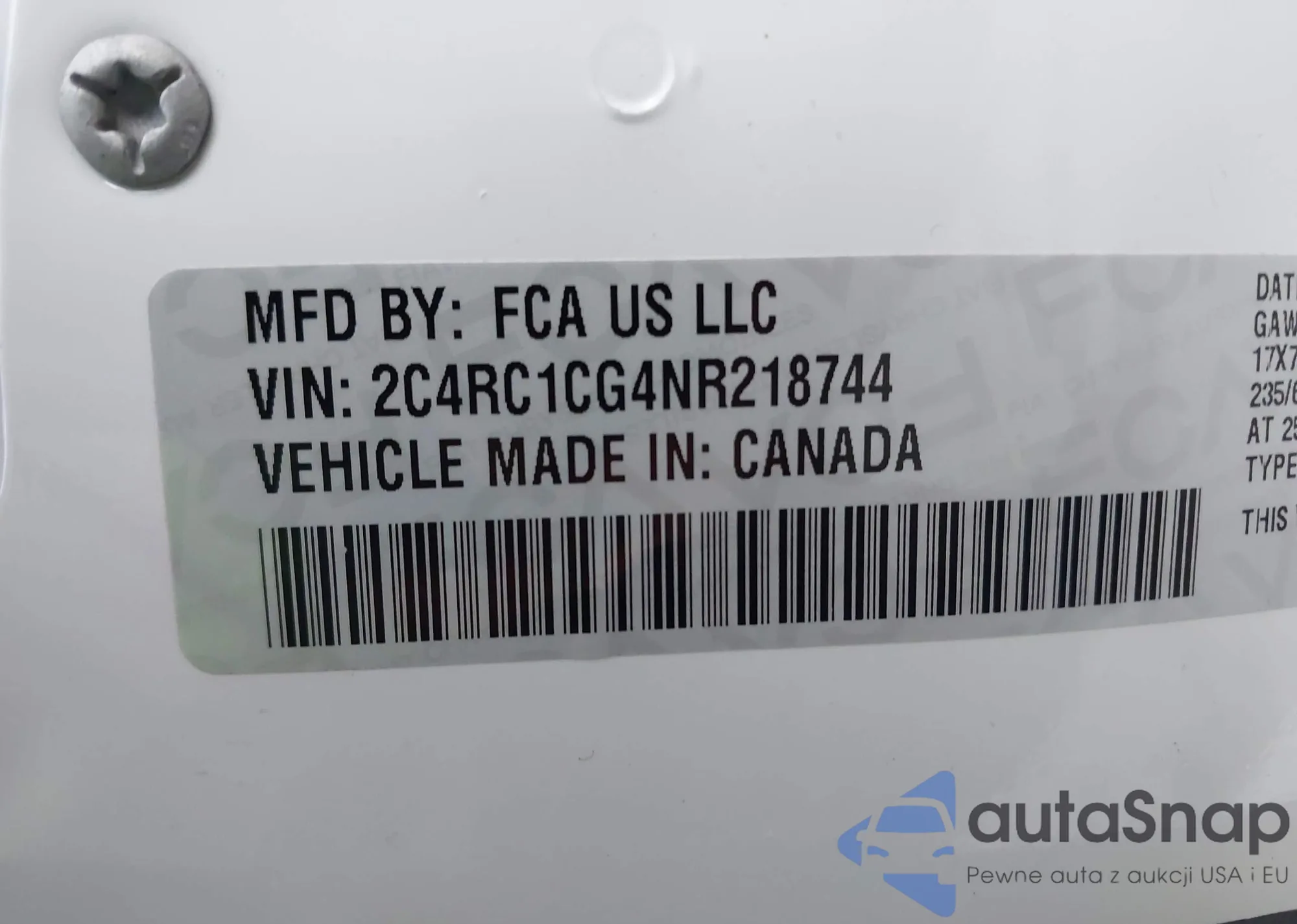 • VIN 2C4RC1CG4NR218744