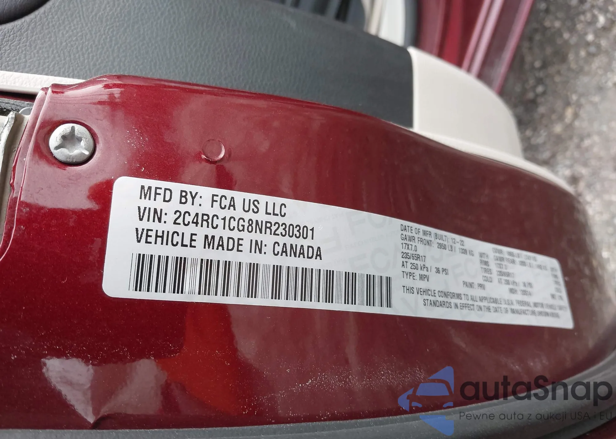 • VIN 2C4RC1CG8NR230301